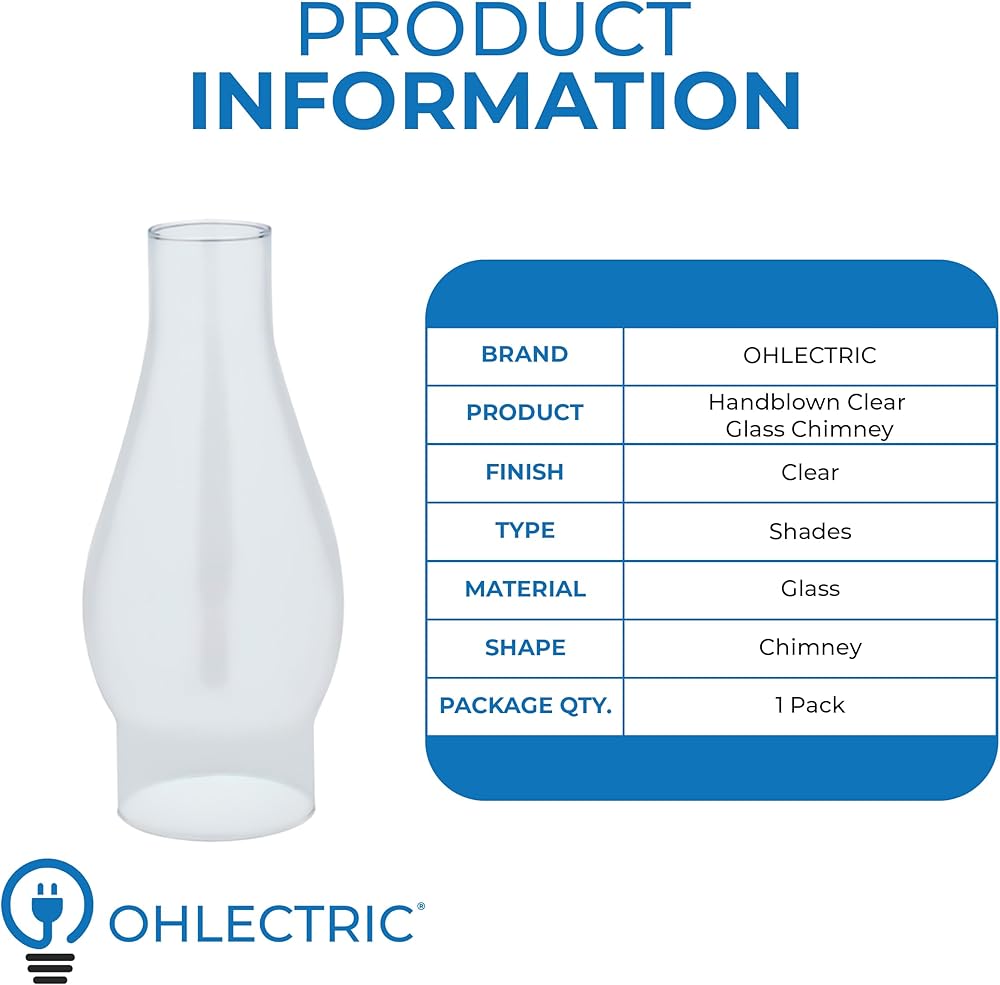 OHLECTRIC 2-5/8-Inch Handblown Clear Glass Chimney for Oil Lamp – Use with Converted Electric Lamps – Ideal Replacement Shade for Oil Lamps, 1-Pack OL-39179