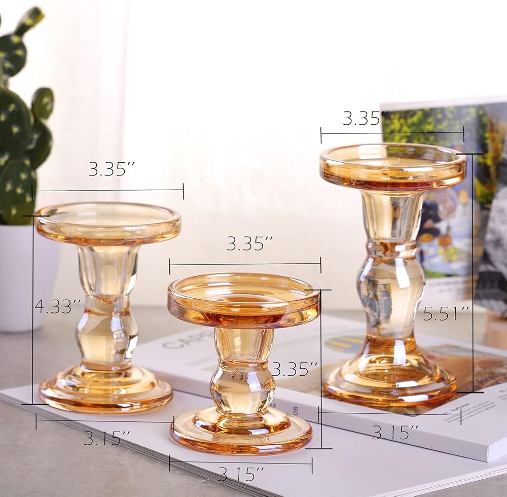 Size – S:8.5cm/3.35in (Height); M: 11cm/4.33in(Height); L:14cm/5.51in(Height). Top Diameter:8.5cm/3.35in; Base Diamter:8cm/3.15in. Fit all standard size taper candles.