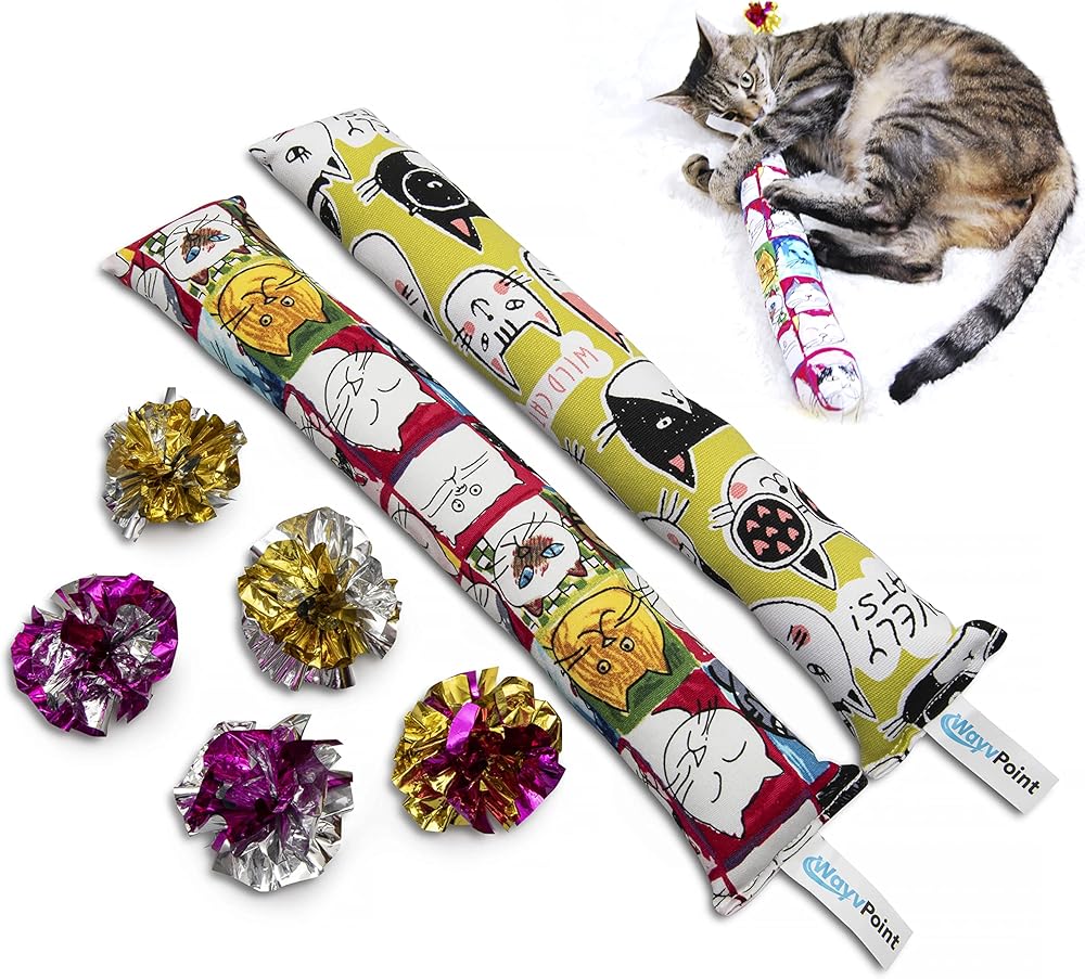 لعبة عصا ركل للقطط من واي في بوينت مقاس 15 بوصة مع النعناع البري - عبوة من قطعتين (كبيرة) - مادة قماشية متينة - قطن غير قابل للإزالة ونعناع بري - بدون حشوات - كاملة مع 5 كرات مجعدة