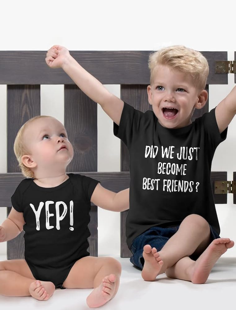مجموعة مطابقة للأخوة تي شيرت للأطفال الصغار + بدلة للرضع؛ لم نحن فقط تصبح أفضل أصدقاء؟ نعم!. ملابس رائعة لإظهار متعة وجود أخ أو أخت جديدة