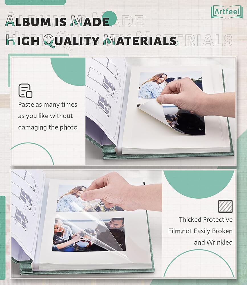 • 👑ألبوم صور ذاتي اللصق خالٍ من الأحماض وبلاستيك PVC: لقد قمنا بترقية وتحديث الغشاء الداخلي للألبوم ليكون أكثر متانة، ويمنع التمزق والتجاعيد والأكسدة، مما يضمن حماية صورك بشكل جيد. الصفحات قابلة لإعادة الاستخدام، مما يسمح لك بإعادة ترتيب الصور ولصقها بسهولة دون أي تلف.