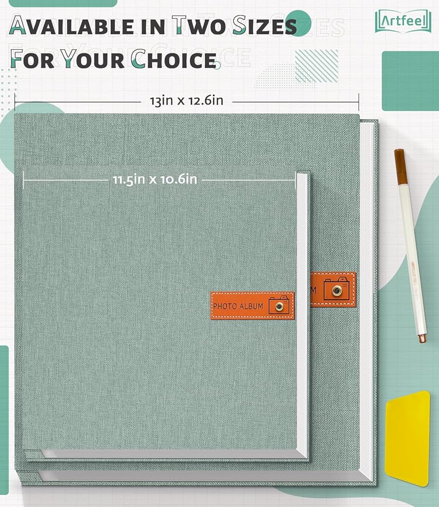 • 💖مقاس ألبوم الصور: بأبعاد 11.5 انش × 10.5 انش من الخارج و11 انش × 8.8 انش للجزء الداخلي اللاصق. تحتوي على 20 ورقة/40 صفحة، مثالية لحفظ الصور بأحجام مختلفة والاعتزاز بتلك اللحظات الجميلة والدافئة.