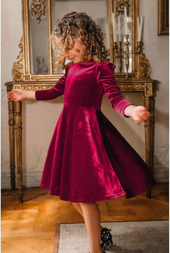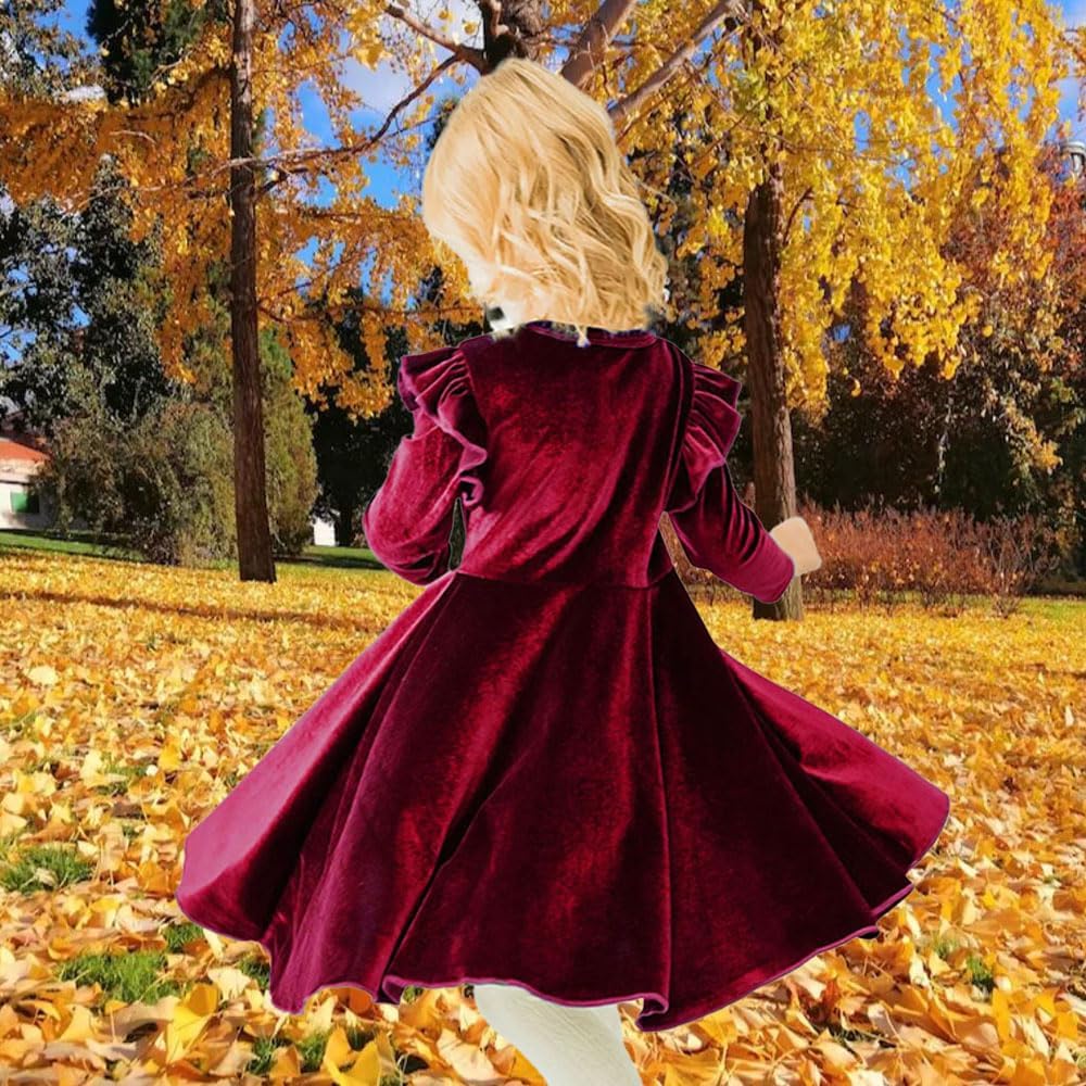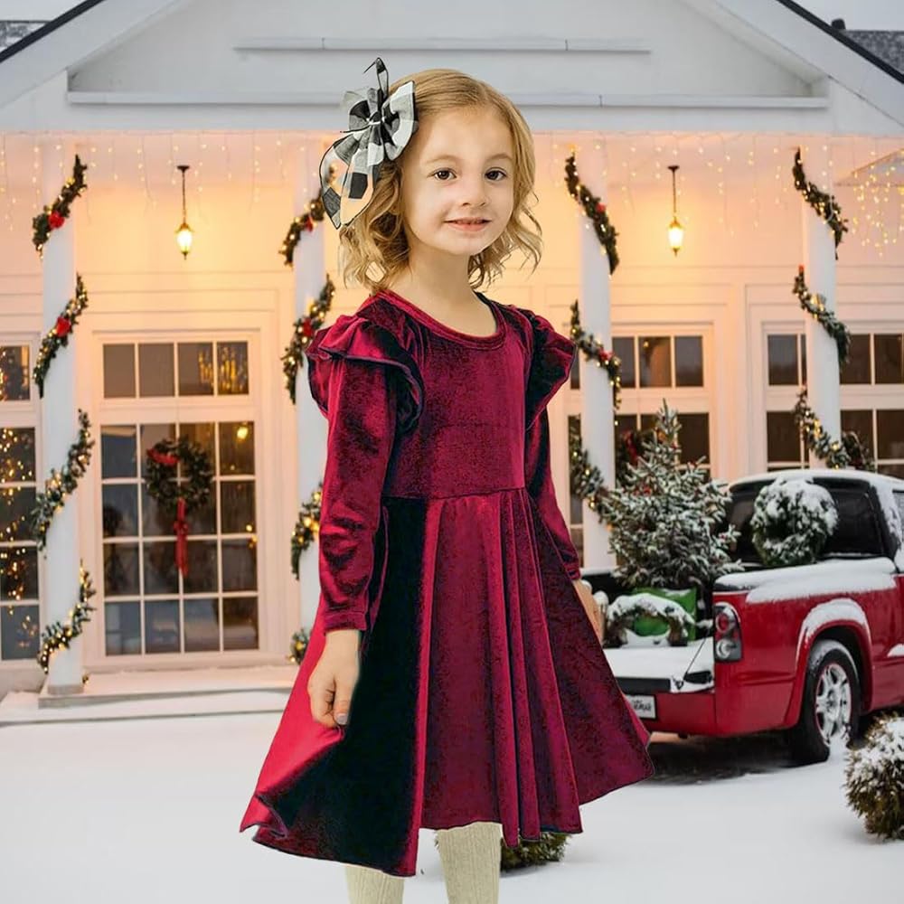 🎀قماش مخملي مريح وقابل للتمدد. أكمام مكشكشة رائعة، وأكمام طويلة للحفاظ على دفء صغيرك الصغير. المخمل يجعلك تبدو أنيقًا وعتيقًا!