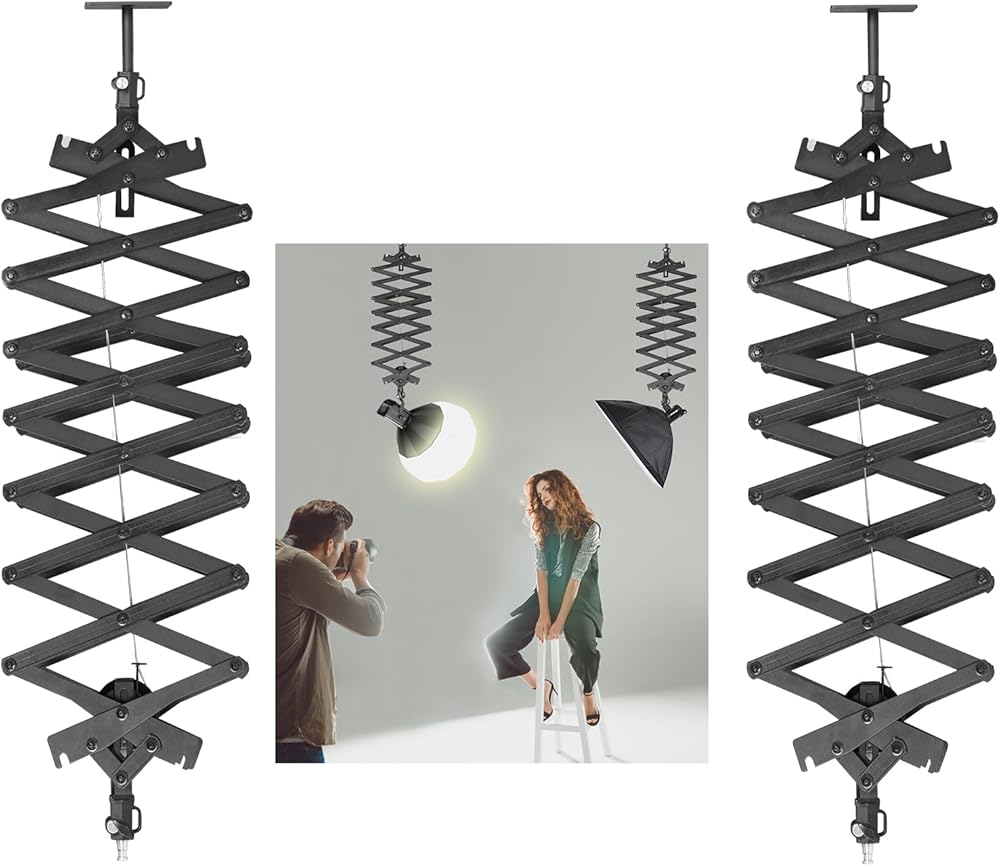 GIJUANRING 2M Pantograph Studio Photography Ceiling Rail System for Photography Studio Video Strobe Light, Monolight, Softbox(2 Packs)