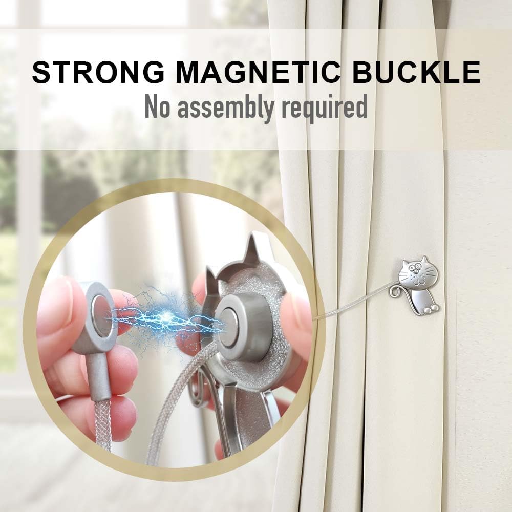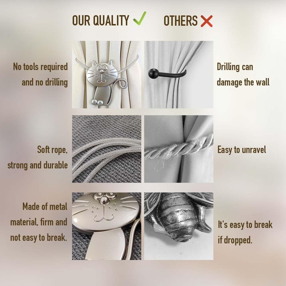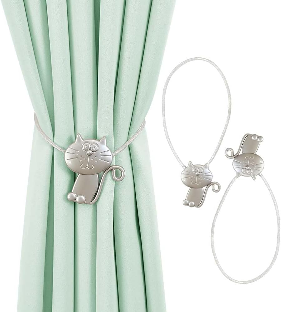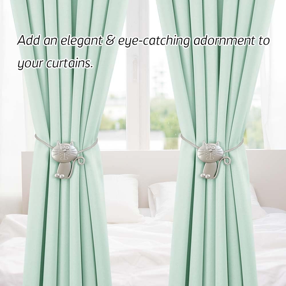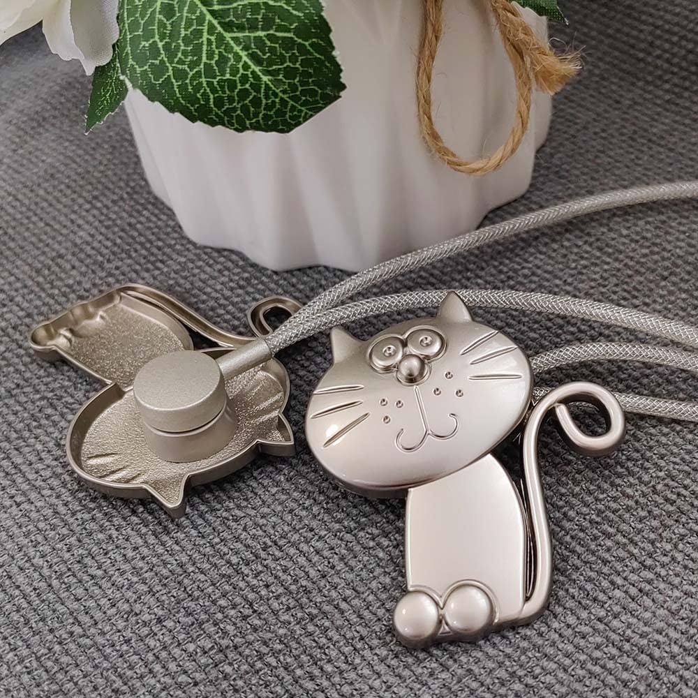 • تصميم معدني مرح على شكل قطة - رباط ستارة خلفي بنمط عتيق مع قطة فضية مبهجة ووجه كبير يضيف لمسة من الأناقة والمرح إلى نوافذك، مما يجعلها ملحقًا زخرفيًا مثاليًا لمنزلك أو مكتبك.