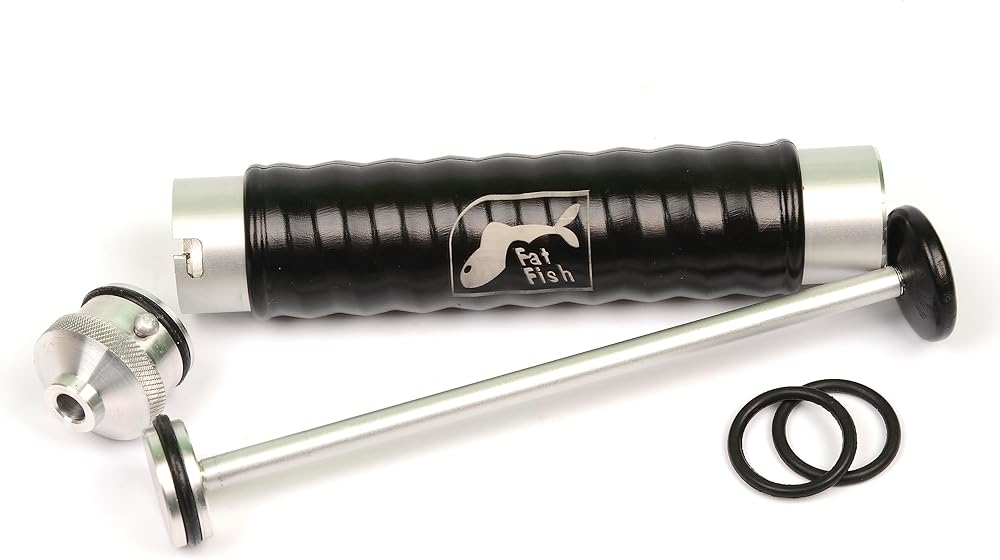 يسمح لك حاقن الألومنيوم من فات فيش بصنع طعم الصيد الخاص بك وهو مثالي للقيام بذلك الطعوم البلاستيكية الناعمة.