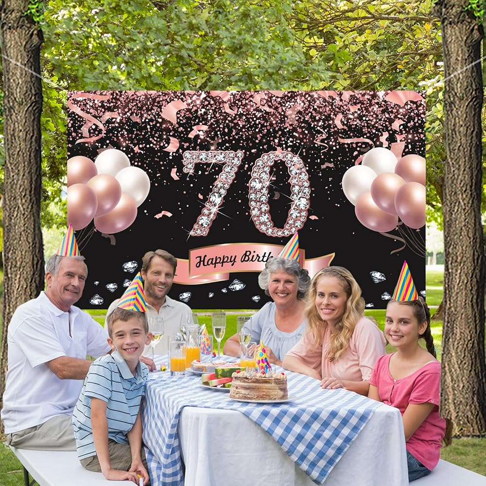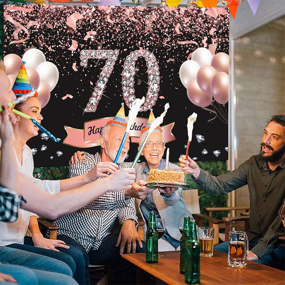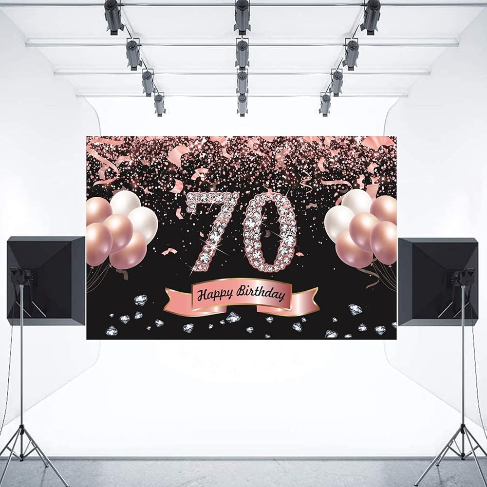 1 × لافتة زينة خلفية لحفلات عيد الميلاد السبعين بلون ذهبي وردي مقاس 6 × 3.5 قدم