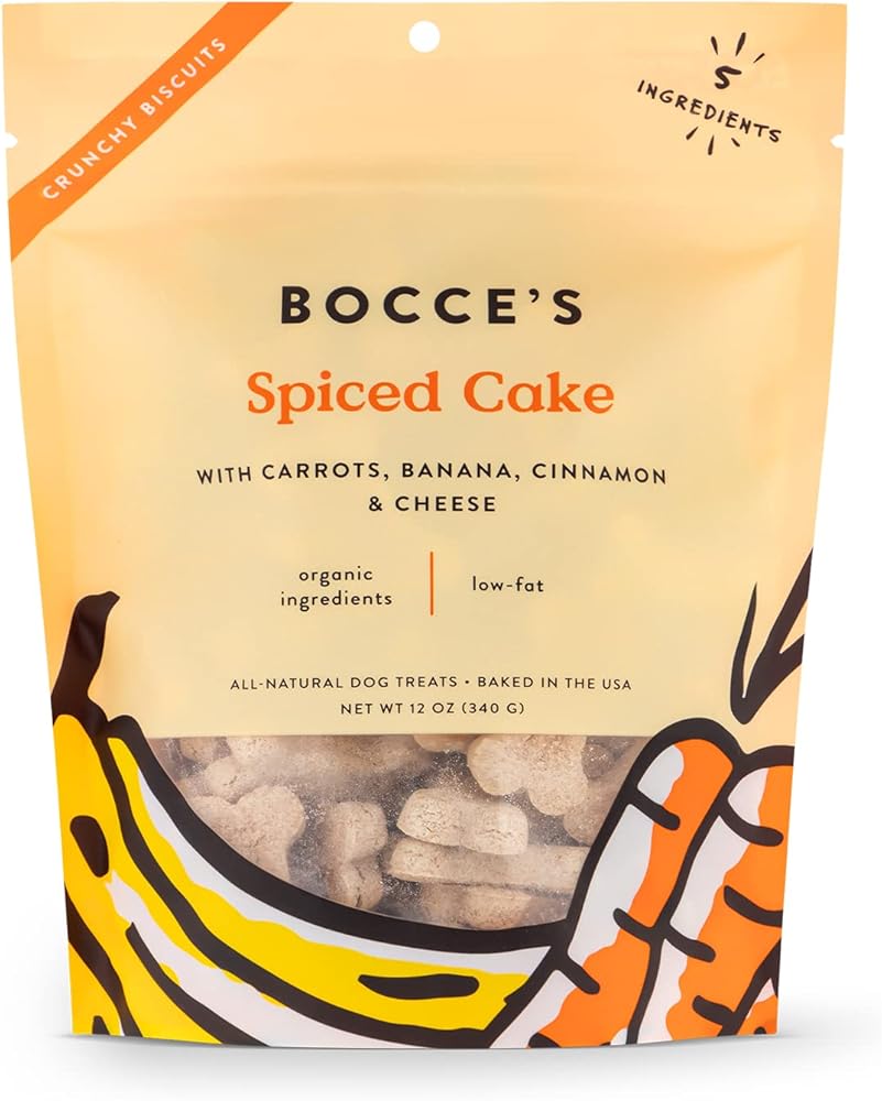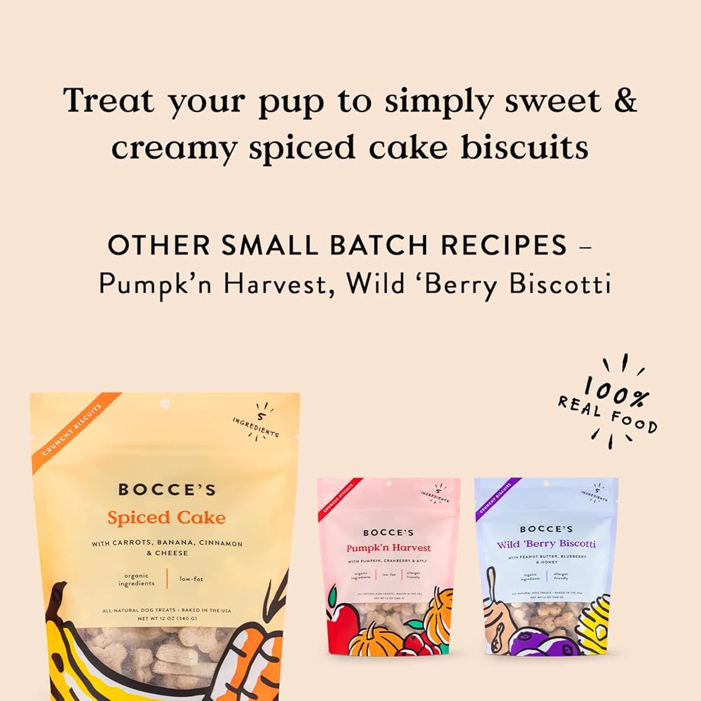 مخبز Bocce طبيعي بالكامل، دفعة صغيرة، مكافآت عضوية للكلاب، بسكويت كعك متبل، خالي من القمح، مكونات محدودة، صنع في الولايات المتحدة الأمريكية مع عبوة قابلة لإعادة التدوير بنسبة 100%، كيس 12 أونصة (DG-BC-SCC)