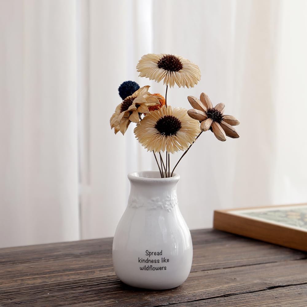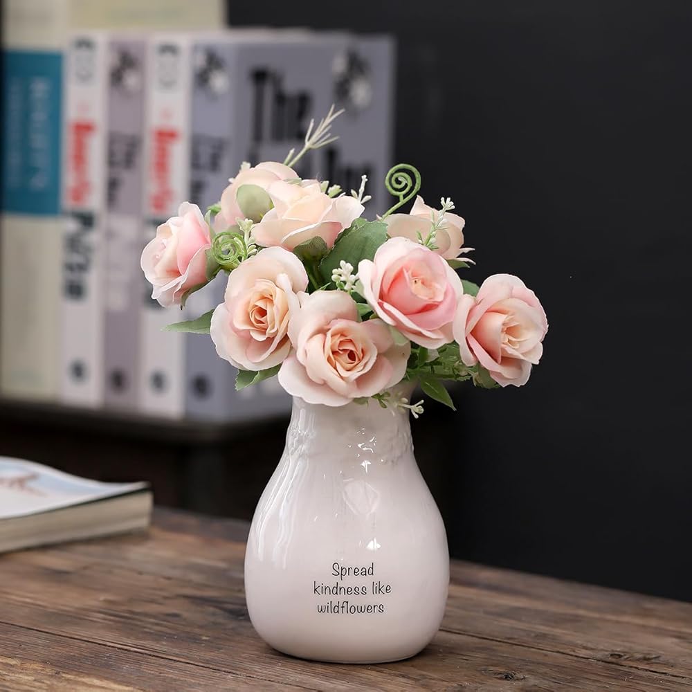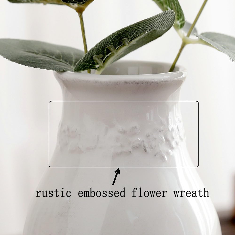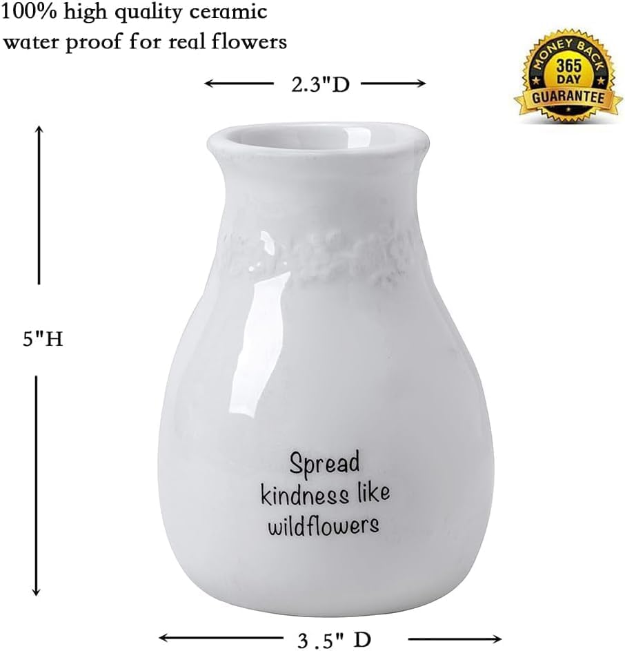 Vintage Design:Our Ceramic small vase is designed with embossed flower wreath on neck. With black cute words on center vase. This vase is very classy and can be used in any environment, from elegant to simple and casual. They will become a beautiful decorative center on your window sill, dining table or wedding reception table.