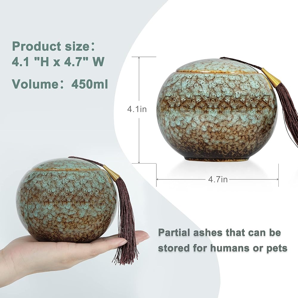 Usage scenario: This urn can hold part of the ashes of people or ashes of pet pike, cats and birds, fresh flowers, dried flowers, soil from the cemetery or a strand of hair