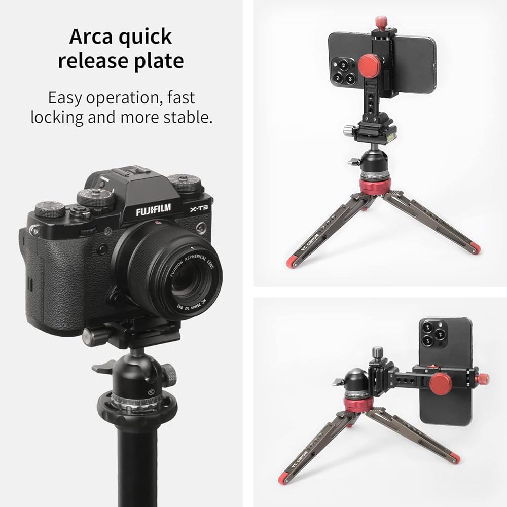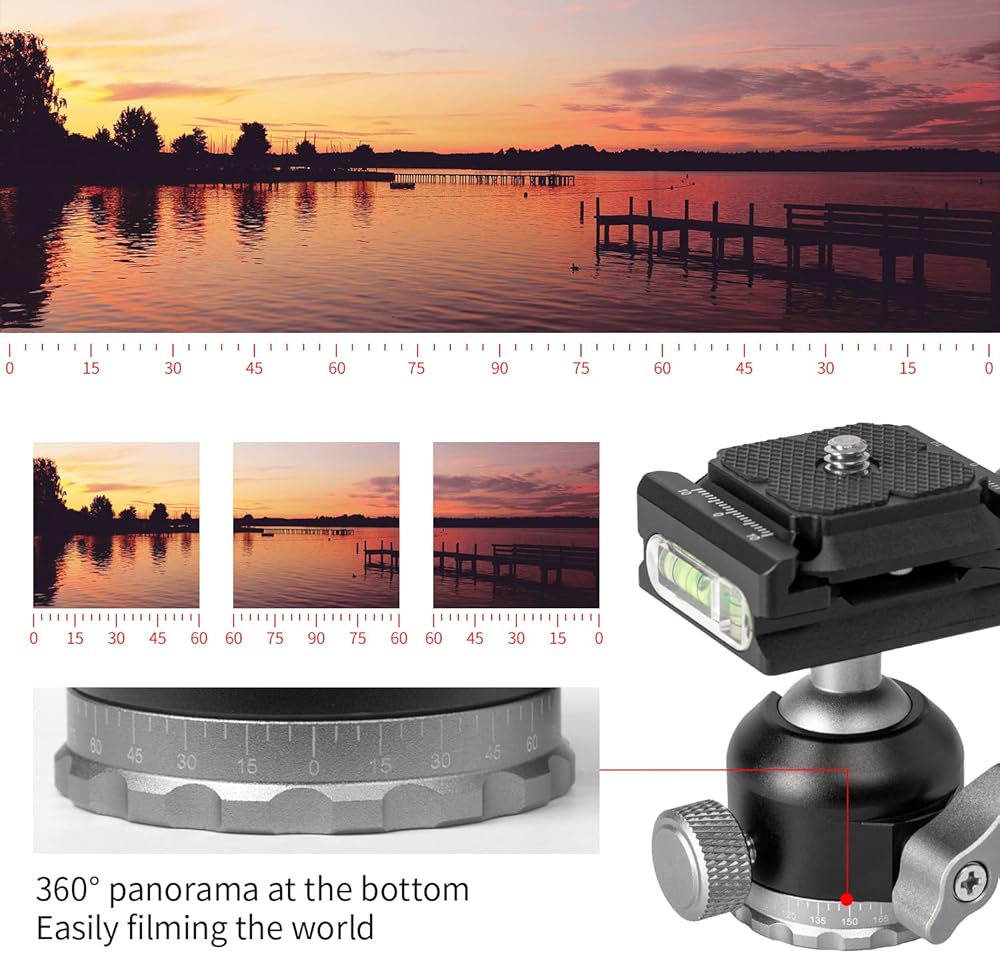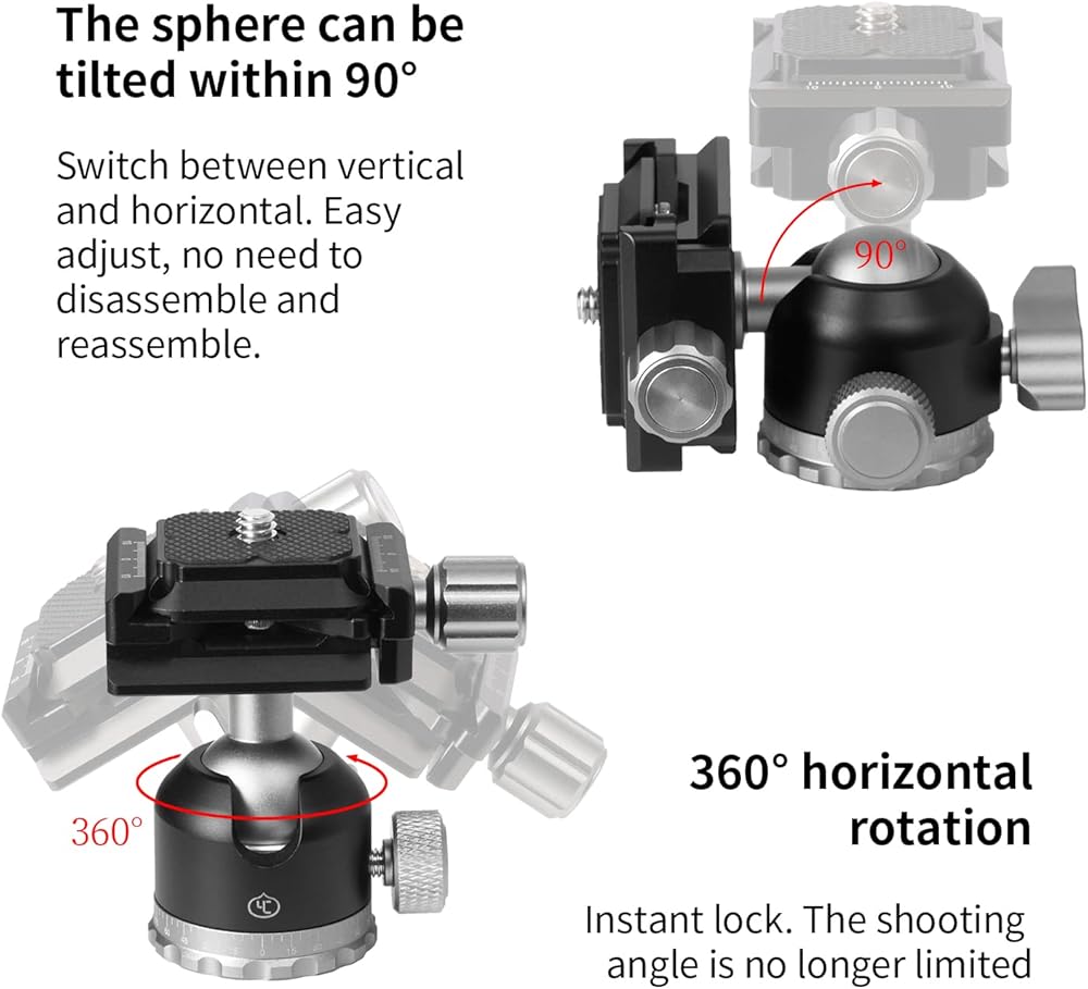 【360 Degree Swivel 】:YC Onion tripod ball head equipped with 360 degree panoramic base with 2 twist locks, you can set your camera at different angle easily and quickly tighten or loosen the ball.