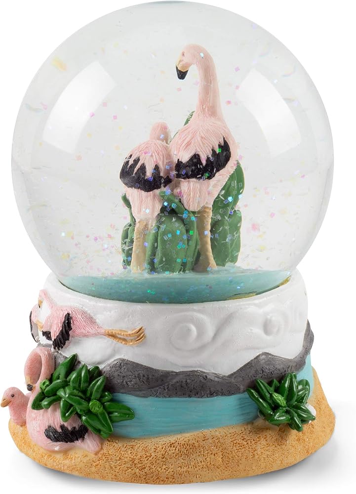 Elanze Designs Pink Flamingos Family Tropical Beach Mother Daughter Tabletop Figurine 100MM Sturdy Wind Up Musical Glitter Water Snow Globe Plays Tune Born Free