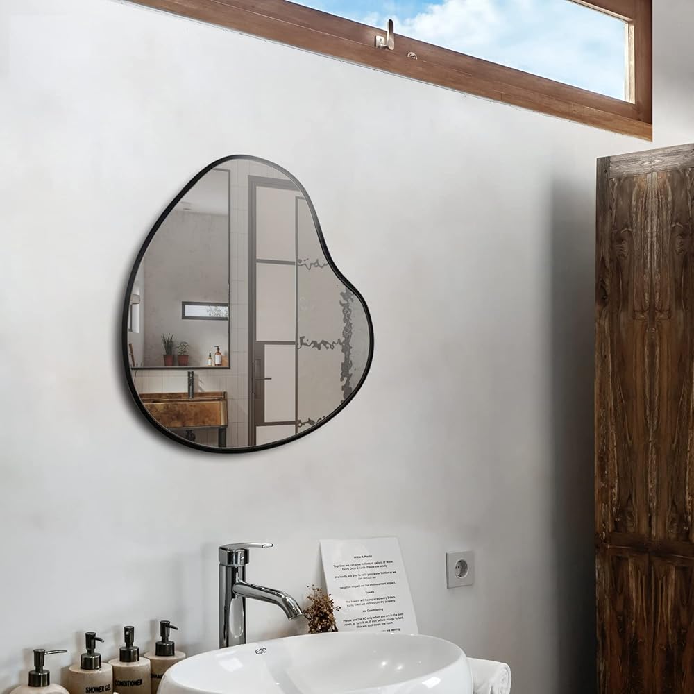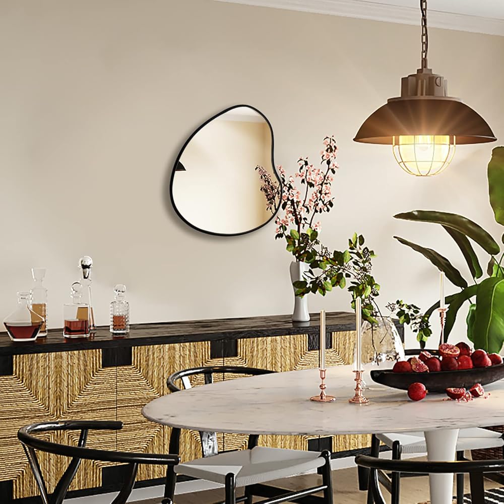 تركيب سهل: هذه المرآة غير المنتظمة للبركة مع علاقتين. فقط قم بثقب فتحتين، ثم قم بتثبيت البراغي، وقم بتعليق المرآة غير المتماثلة.