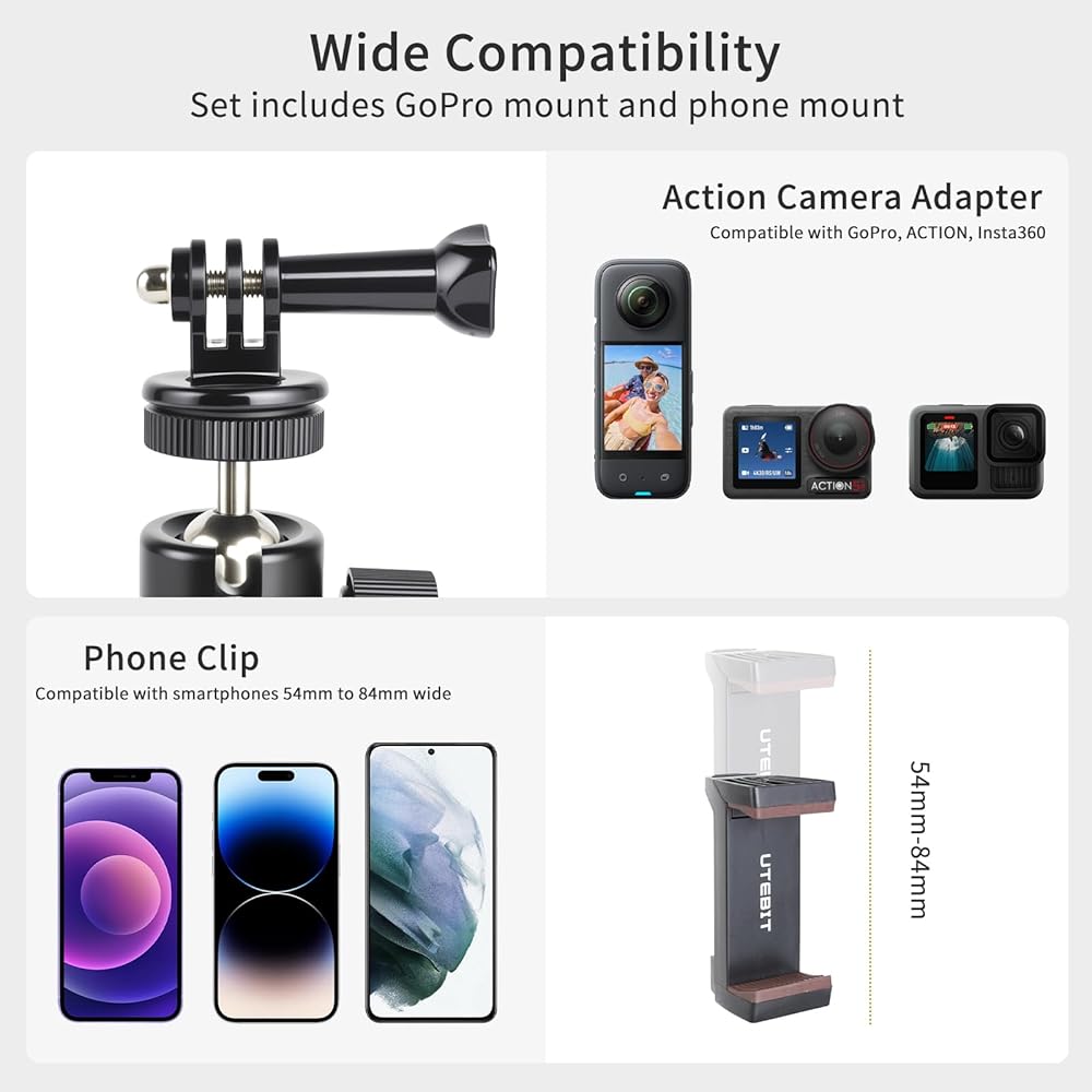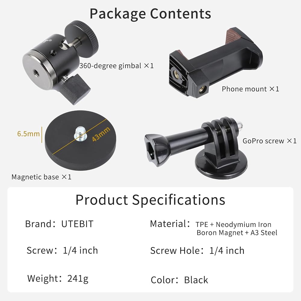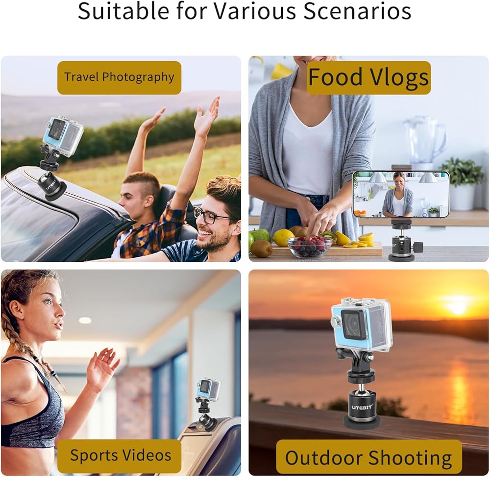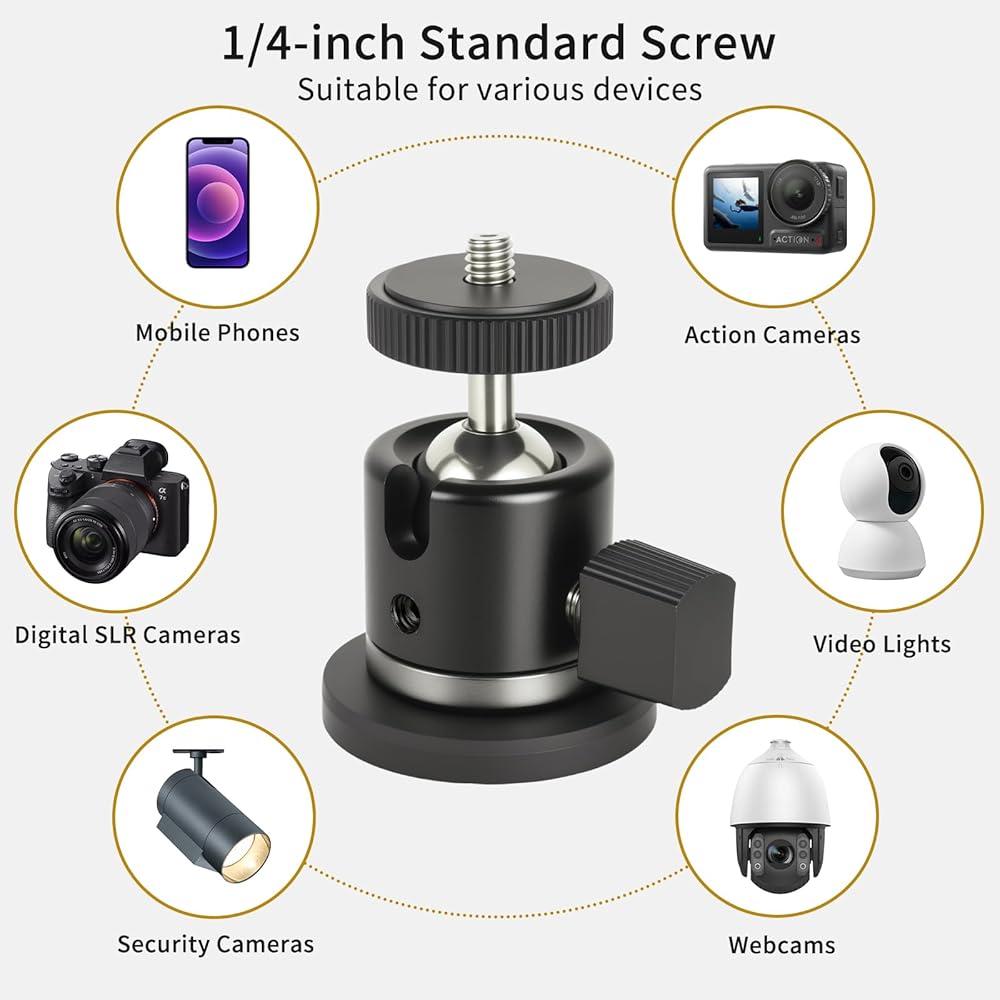 【برغي 1/4 بوصة ومستخدم على نطاق واسع】يمكن استخدام رأس الكرة مع حذاء ساخن 1/4 بوصة للكاميرات والمصابيح وغيرها من المعدات، كما يمكن مطابقتها مع الحوامل الثلاثية وحوامل سطح المكتب وما إلى ذلك. حامل الهاتف والعمل محول الكاميرا مناسب للهواتف المحمولة والشاشات الصغيرة وgopros. مع القاعدة المغناطيسية، لا حاجة إلى اللصق، سهل التركيب والاستخدام، قم بتوسيع نطاق المكان المستخدم.