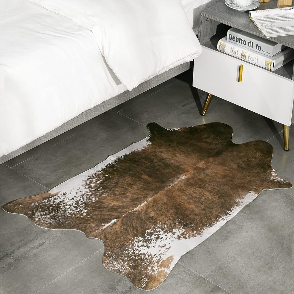 Keeko Faux Cowhide Rug Cow Print Throw Rugs, 2.3x3.6 Western Living Room Entryway Rug Non-Slip Indoor Country Premium Animal Print Small Rugs for Bedroom Faux Hide Carpet Room Decor Brown