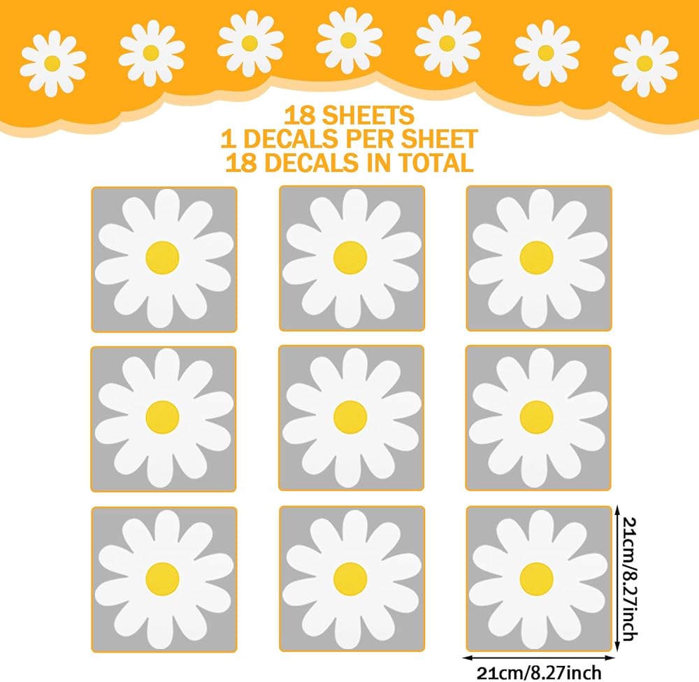 SUFFICIENT QUANTITY:Total 18pcs white daisy wall stickers flowers (diameter: 6.6inch) in each pack, you can create a beautiful and vibrant daisy garden in your kids bedroom or living room. Let their imagination bloom!