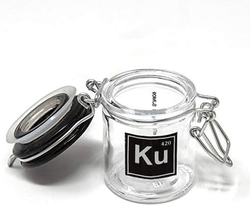 HIGH STYLE: A Periodic Table square reading Ku, adorns the clear glass body, complimented by the a black glass lid