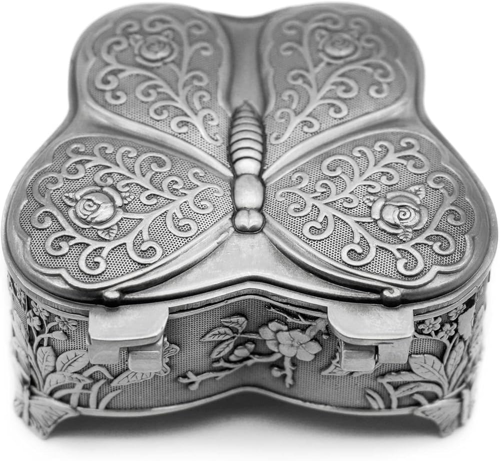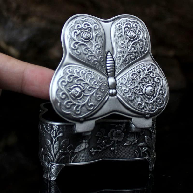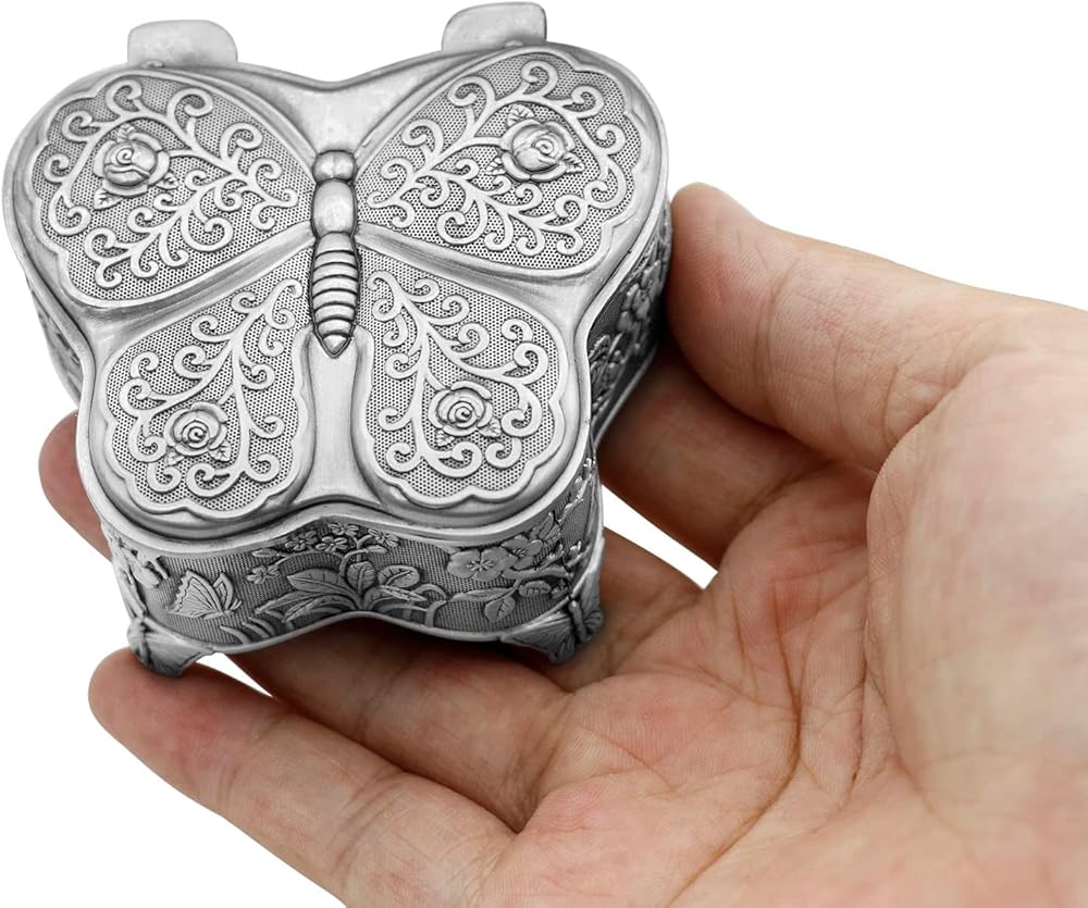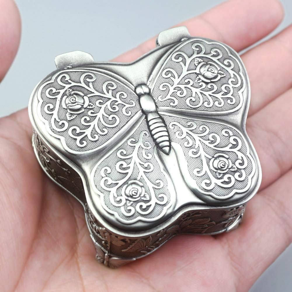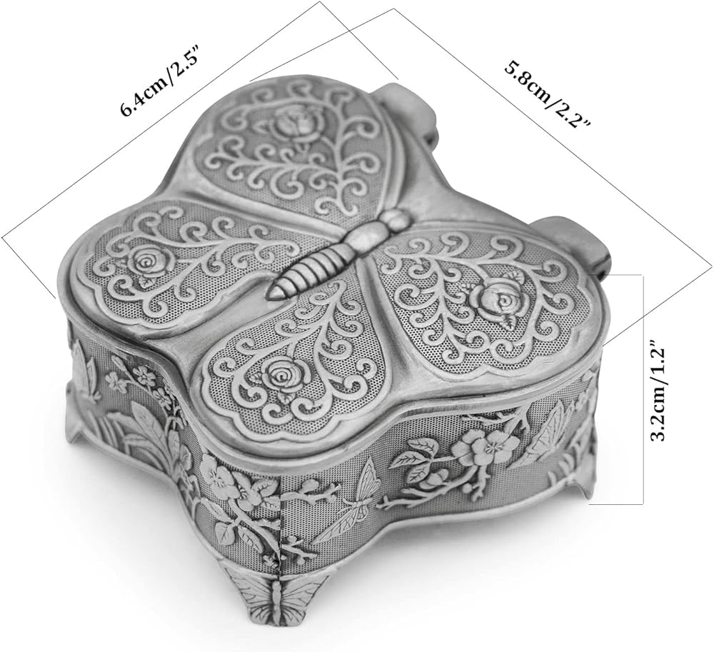 صندوق مجوهرات معدني عتيق على شكل فراشة، صندوق هدايا صندوق هدايا على الصدر للفتيات والسيدات، لون القصدير، صغير GB014
