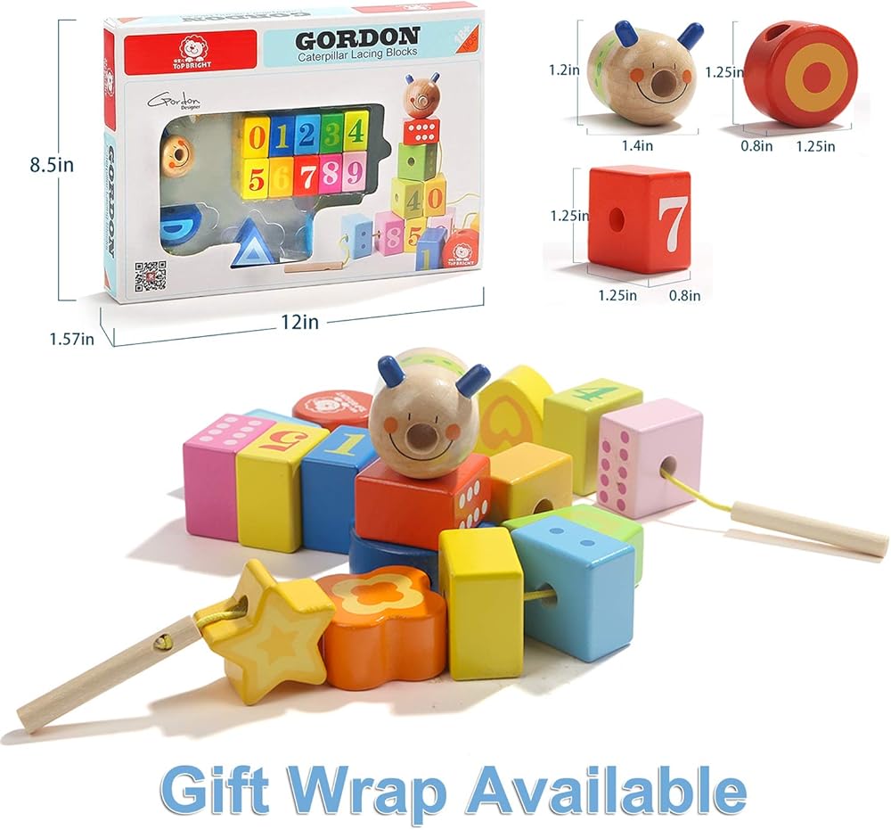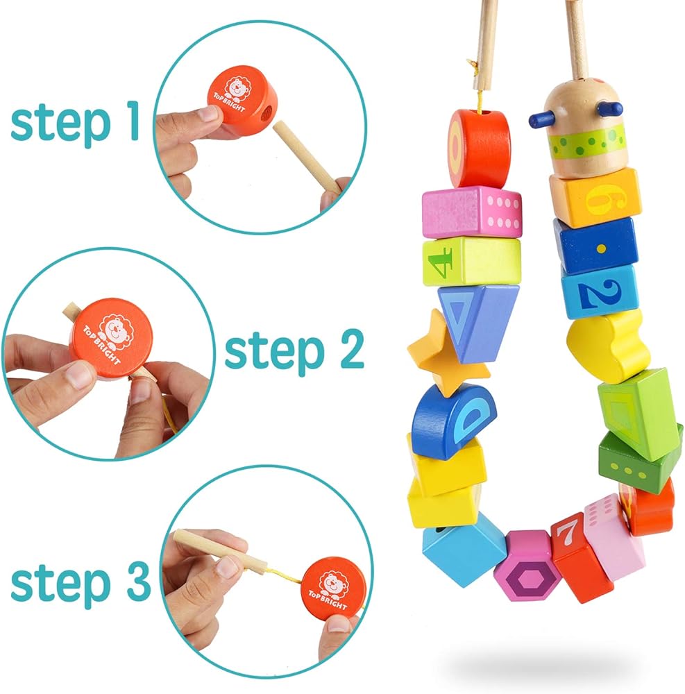 ألعاب أطفال من توب برايت خرز خشبي مع أربطة لهدايا البنات والأولاد بعمر عامين من سن 18 شهر