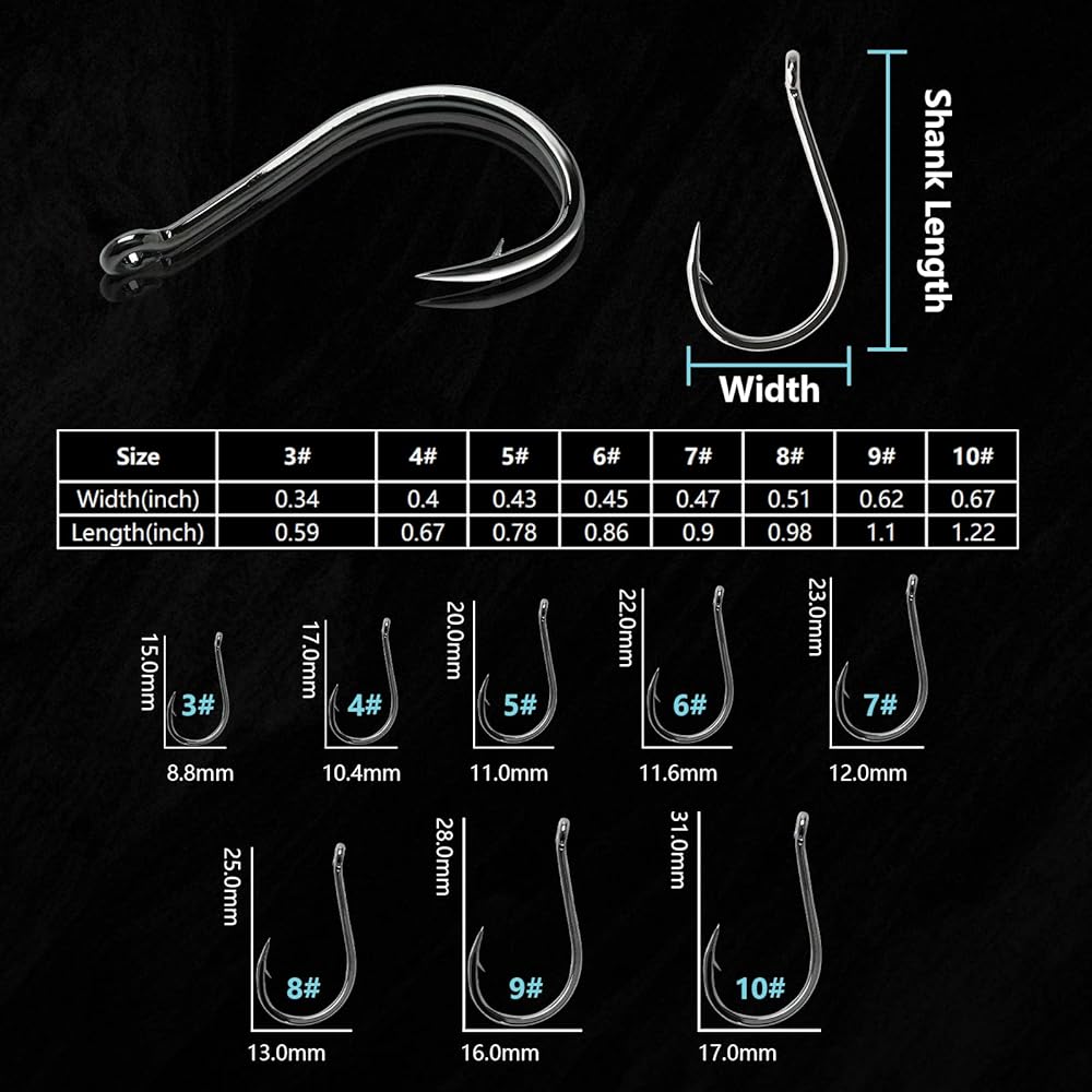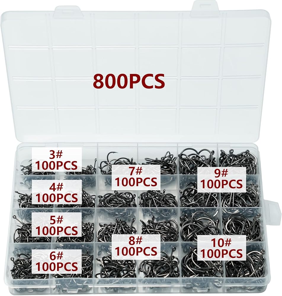 سهلة الاستخدام: مجموعة خطافات الصيد هذه تتضمن 8 مقاسات خطافات --3# 、4#、5#、6#、7#、8#、9#、10# -- 100 قطعة لكل مقاس (إجمالي 800 قطعة). مقسمة إلى صندوق بلاستيكي مقسم. تأتي الخطافات في مجموعة متنوعة من الأحجام والكميات، ويمكنك اختيار مقاسات مختلفة من الخطافات للأسماك المختلفة في أي بيئة. يمكن استبدالها بسرعة إذا تعطل الخط لضمان عدم انقطاع الصيد. وفي الوقت نفسه يقلل من نفوق الأسماك.