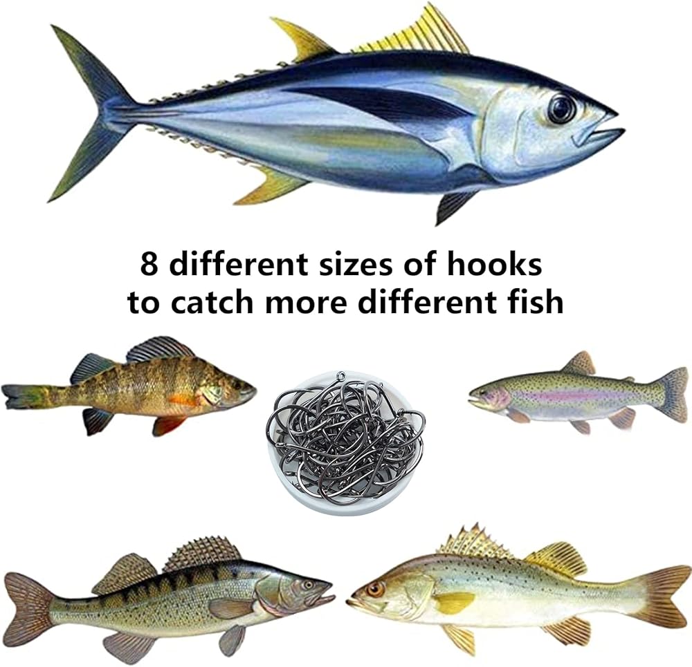 يستخدم على نطاق واسع: كل خطاف له سطح أملس ويمكن التقاط سمك السلور والسلمون والتونة وسمك الشمس والسلمون المرقط والأسماك الكبيرة والسلمون المرقط والباس وغيرها من الأسماك بسهولة. هيكل مصنوع من الستيل الكربوني يجعله متينًا ومناسبًا للمياه العذبة ومياه البحر. اعثر على هدفك واختر واحدًا من الخطافات الثمانية (الصغيرة إلى الكبيرة) للإمساك به!
