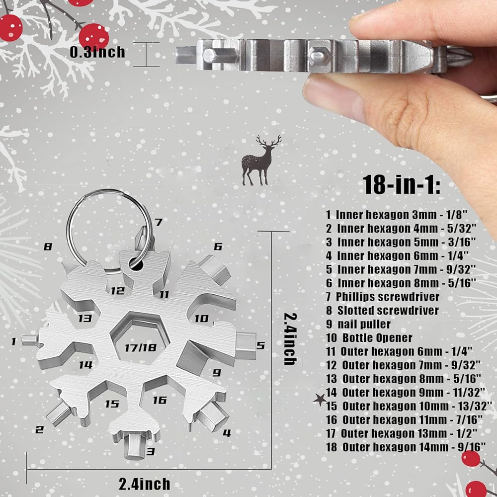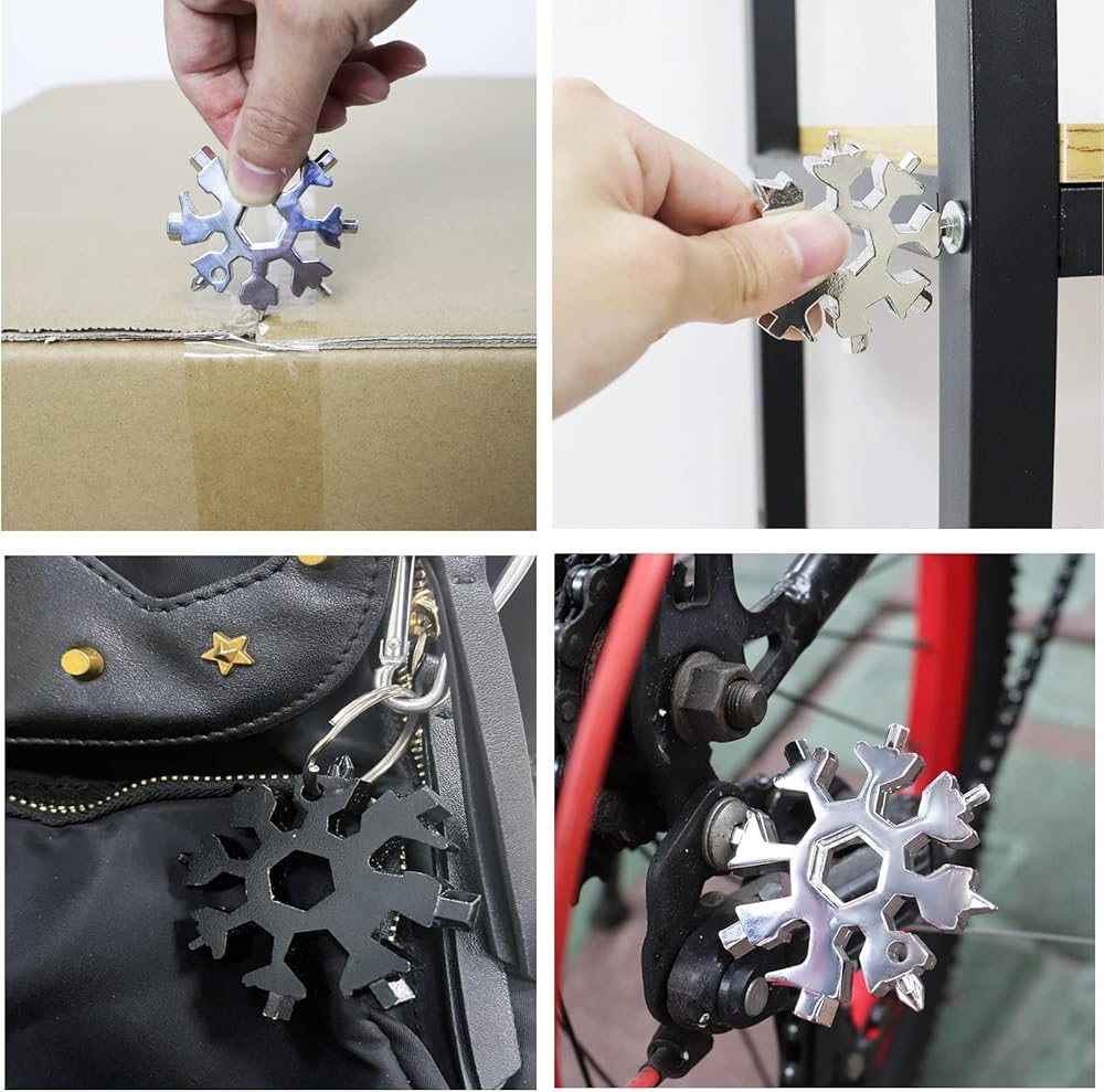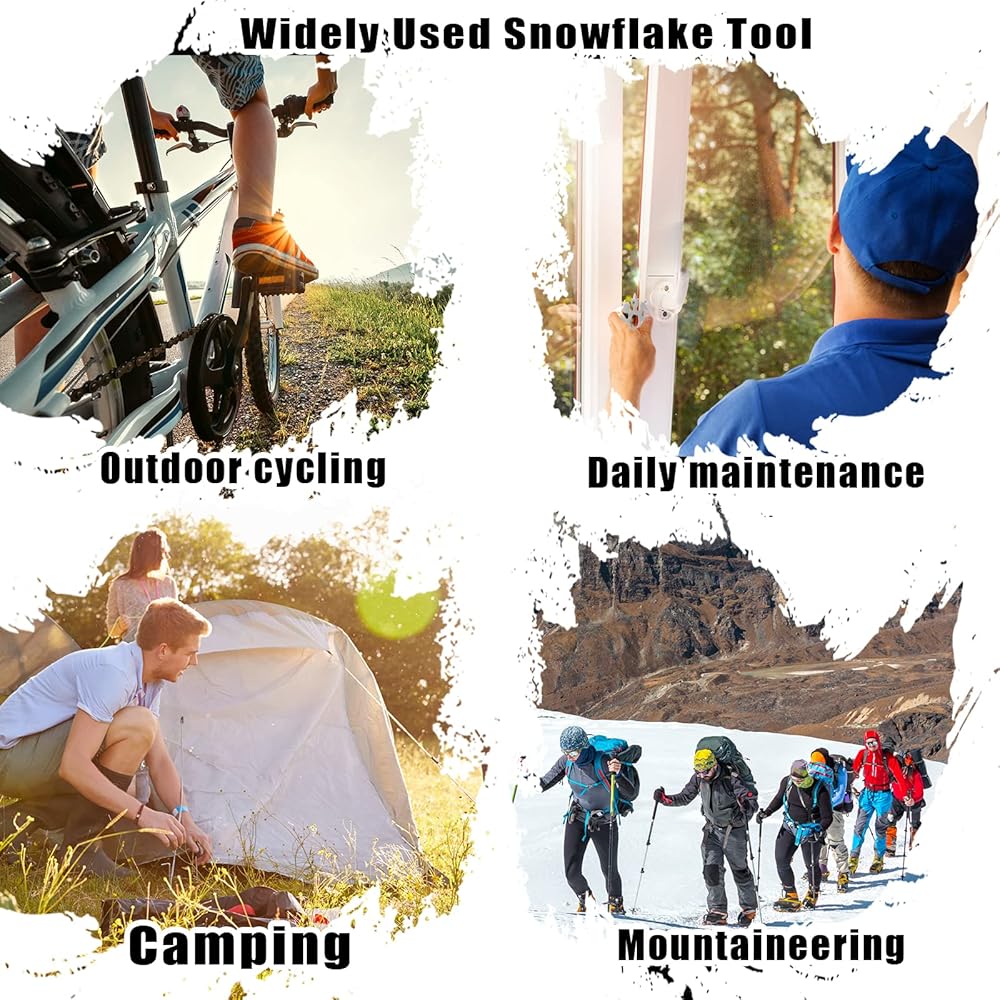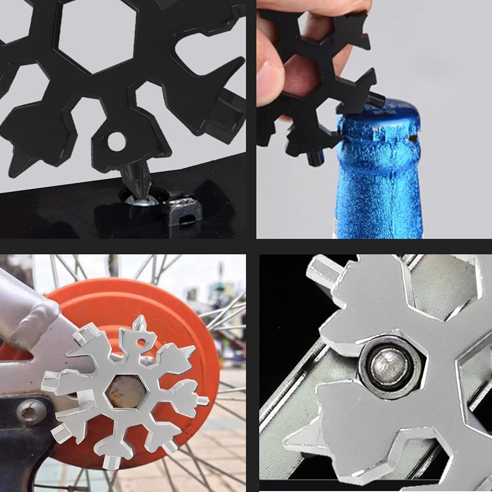 【Portable EDC Tool】This 18-in-1 snowflake tool can be used to stainless steel snowflake bottle opener, turn the screw, fix snowboarding, bicycle, toys. It also can be used for outdoor activities, such as camping, boarding, rescue and something that might be used.Once you have the snowflake tool, you will not have the trouble of searching for wrench and screwdriver in the messy toolbox