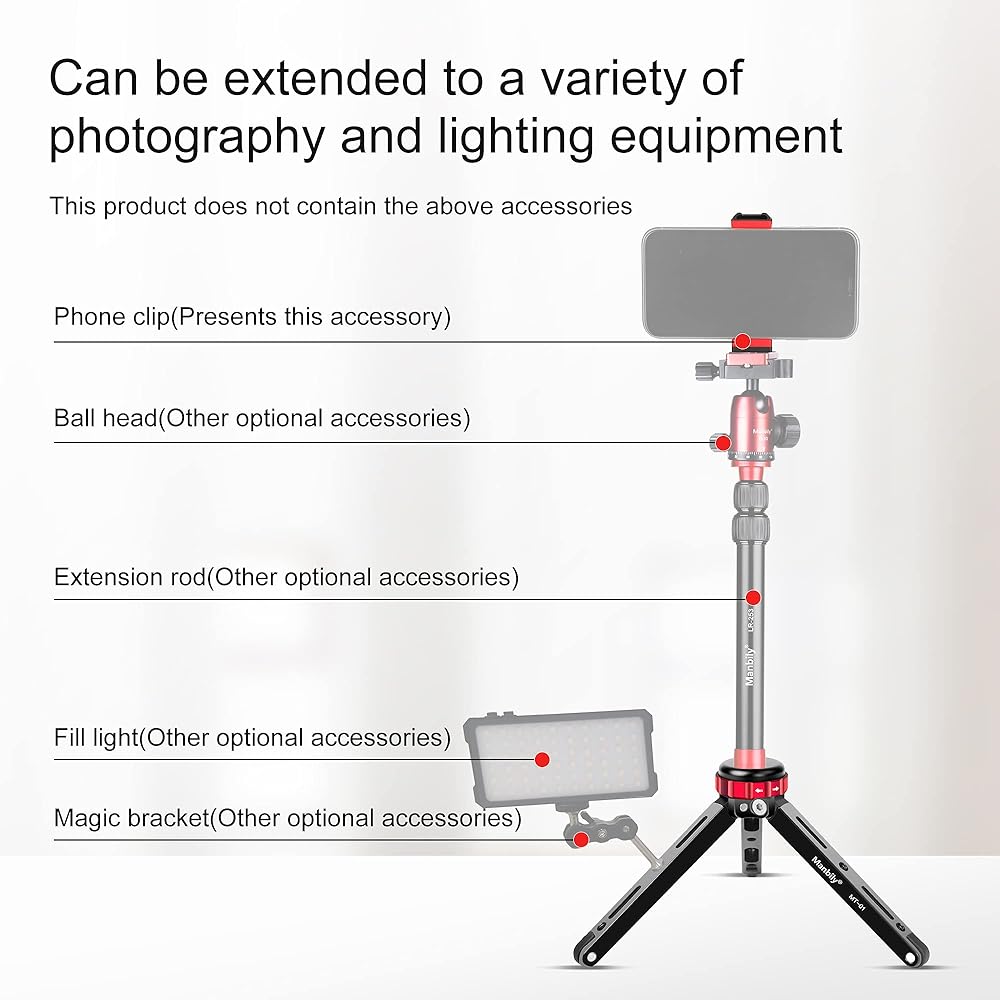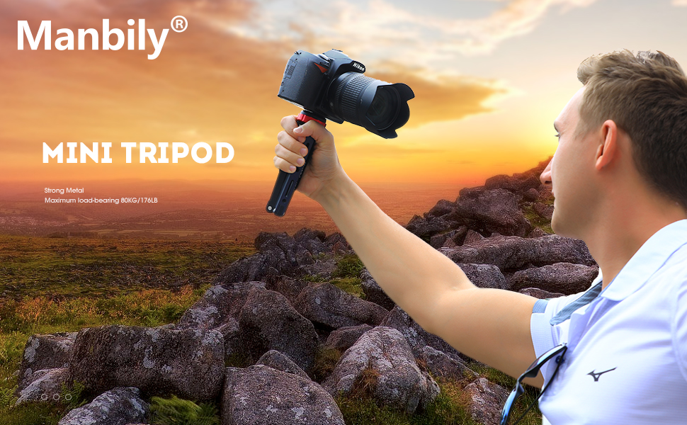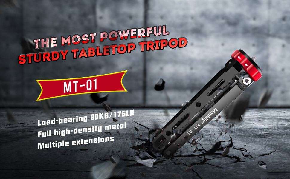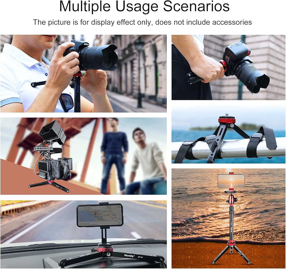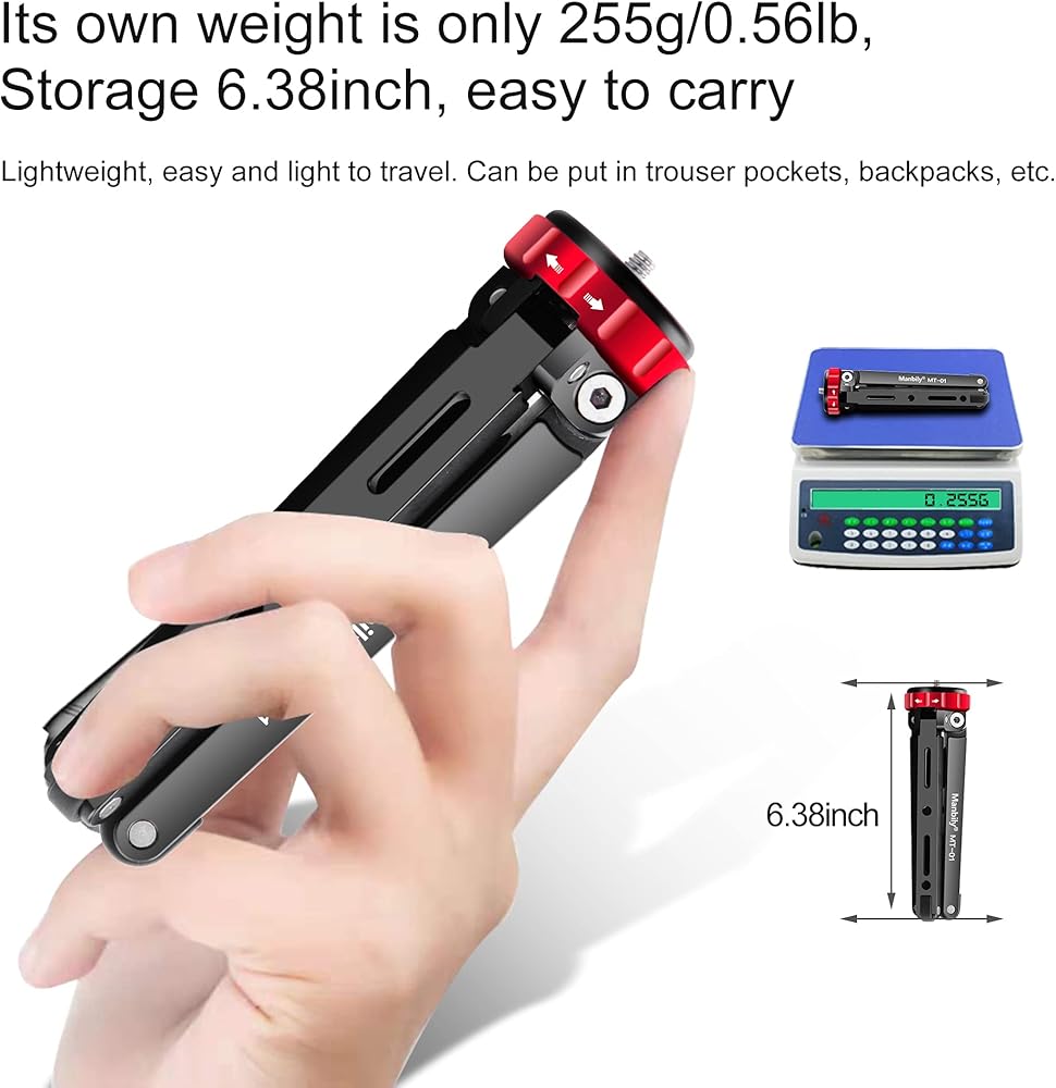 مانبيلي حامل ثلاثي القوائم لسطح الطاولة لكاميرا دي اس ال ار للموبايل مع 1/4 و3/8 تثبيت برغي وتصميم ساق وظيفية، حمولة قصوى 175 باوند، الومنيوم معدني سي ان سي، حامل سفر صغير (MT-01)