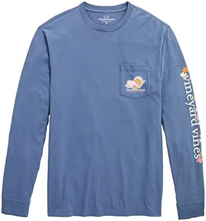تي شيرت Vineyard Vines للرجال بأكمام طويلة وجيب على شكل أيقونات عيد الشكر، مقاس متوسط