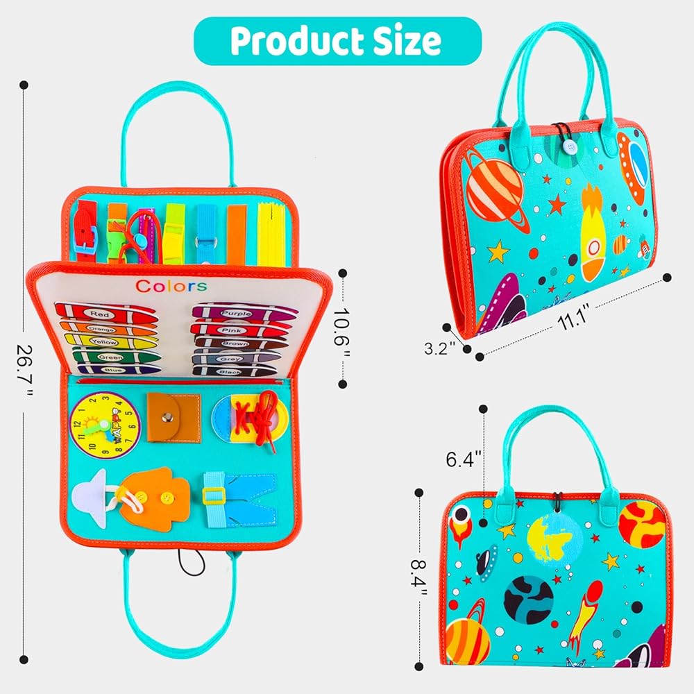 ✨【Perfect Gift Idea】Are you still struggling with what gift to give to boys and girls? Our busy board aims to cultivate dressing skills, finger dexterity, and cognitive skills. ideal party favor and all kinds of festivals (Easter, Birthday, Cyber Monday, Black Friday, Halloween goody bag,Christmas).
