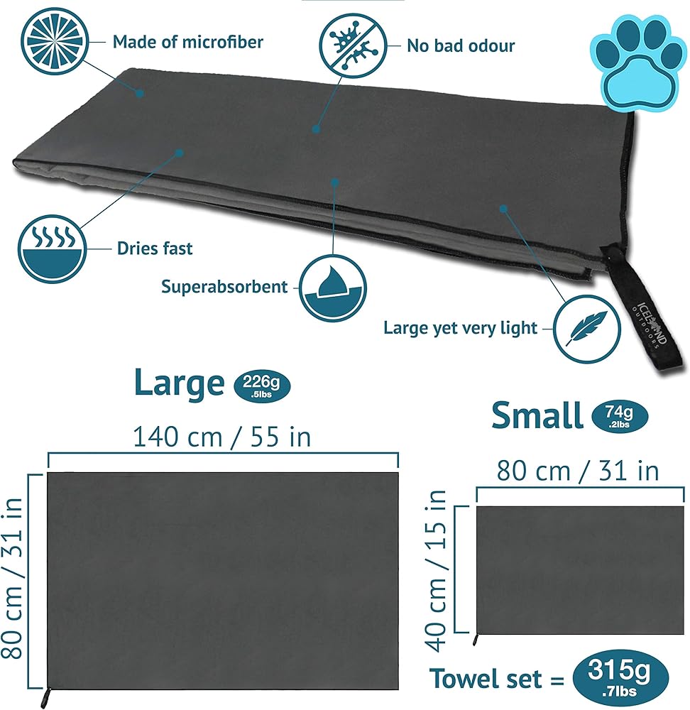 ويت مودي دوج نو مور آند متعدد الاستخدامات: مناشف الكلاب آيسلندا اوتدورز رائعة لتجفيف وتنظيف كلبك بعد يوم ممتع في الحقول أو الغابة أو على الشاطئ. يمكنك أيضًا استخدام مجموعة المناشف كحماية لحذاء سيارتك أو الأثاث أو البطانية في يوم بارد.
