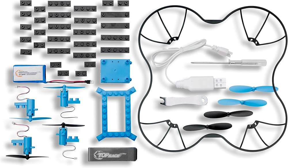 يشمل: 54 × مكعبات بناء، 1 × جهاز إرسال 2.4 جيجاهرتز، 1 × مفك براغي، 1 × كابل شحن USB، 1 × بطارية 3.7 فولت 600 مللي أمبير في الساعة، 4 × محركات، أجزاء إضافية، دليل. ملاحظة: يتطلب جهاز الإرسال 3 بطاريات ايه ايه (غير متضمنة). طائرة بدون طيار رائعة لفصول العلوم، استمتع!! !