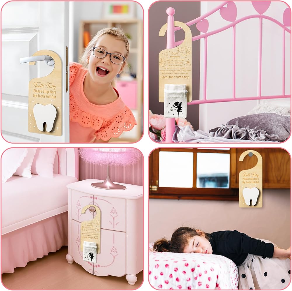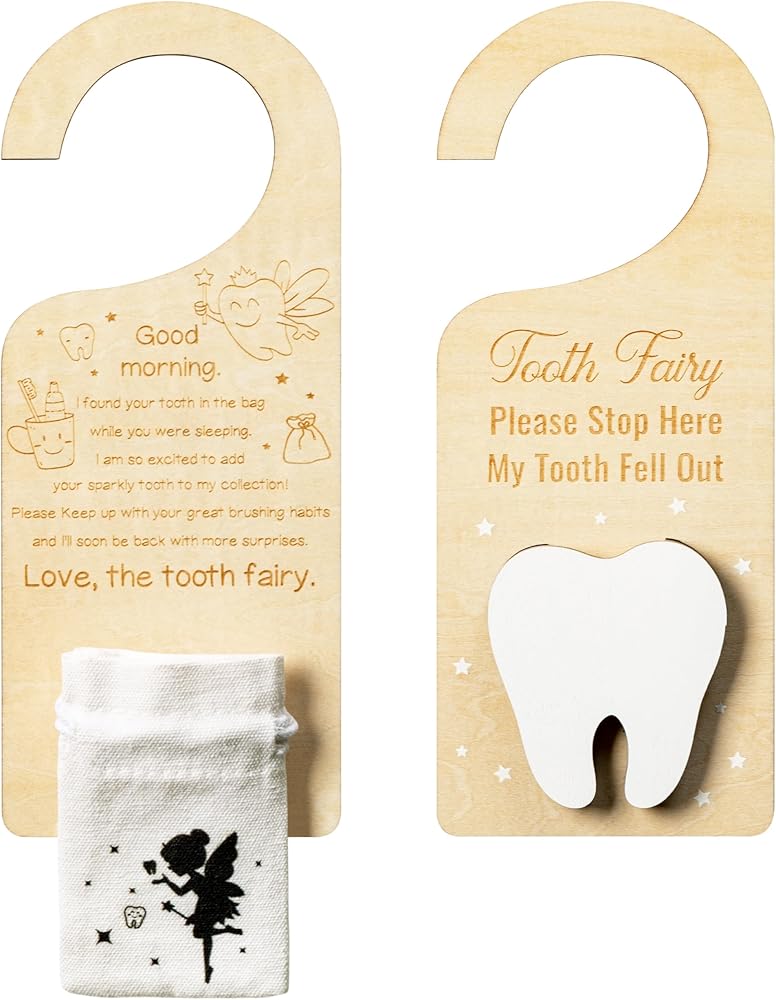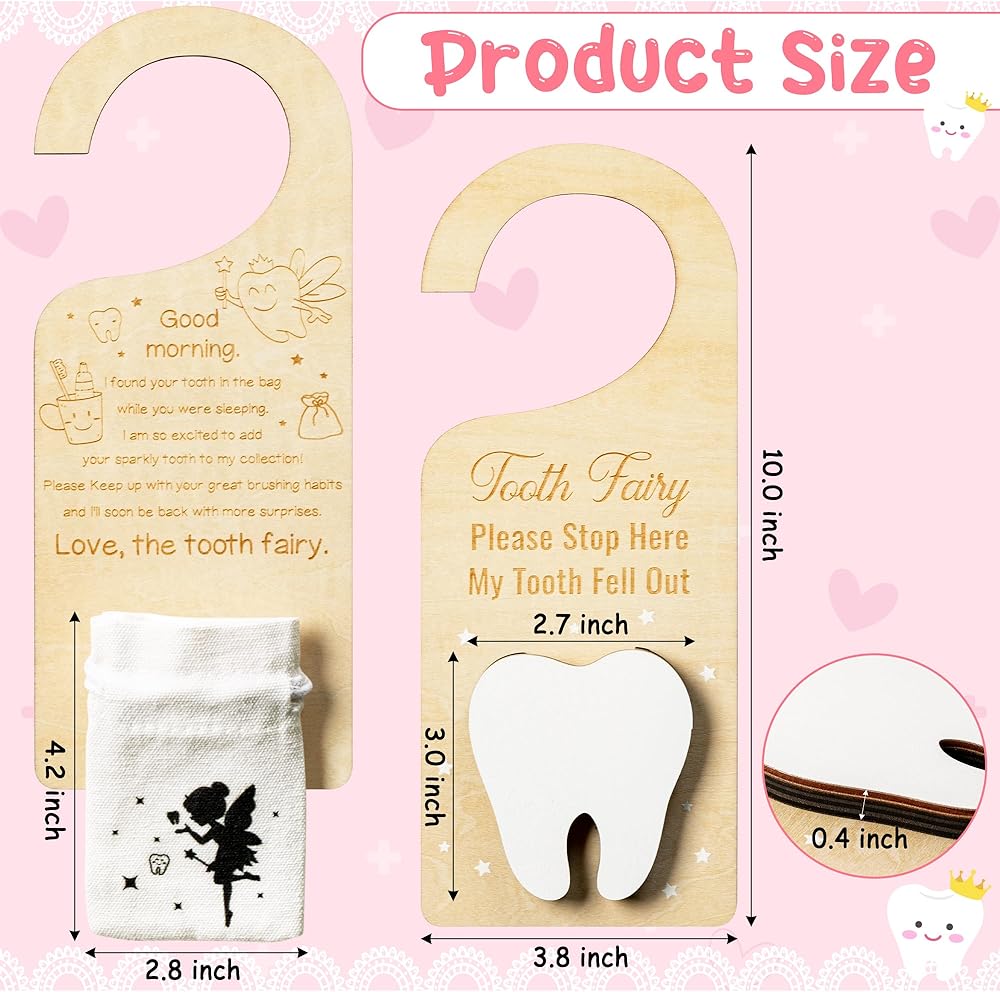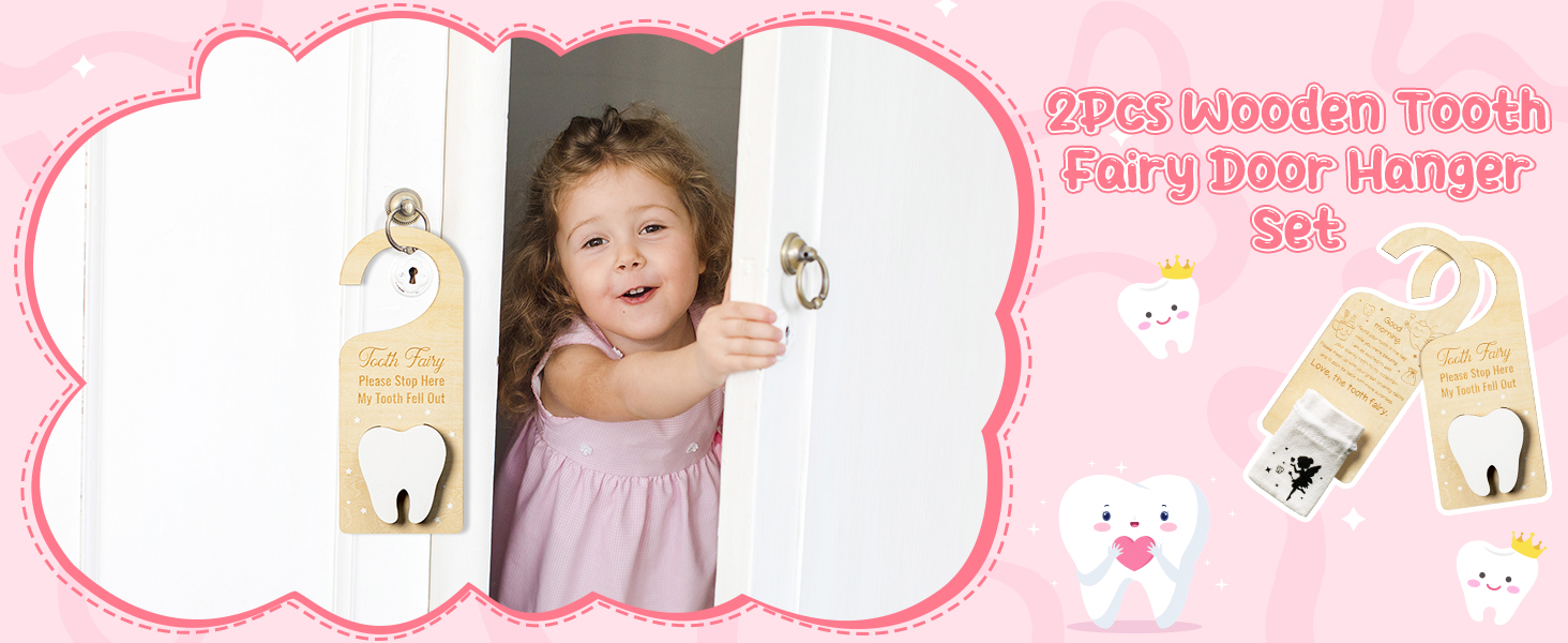 Ideal Gift for Kids: As a gift, our Tooth Fairy Doorknob Hanging Sign Set is a unique and meaningful gift for children's birthdays, tooth loss anniversaries, baby welcome party or special rewards. Keeping the lost teeth in their pockets and waiting for the tooth fairy to trade them for money will give your child a fun and surprise-filled experience during the tooth loss period, and they can be a special memento of their growing up years that they will look back on with warmth in the future.
