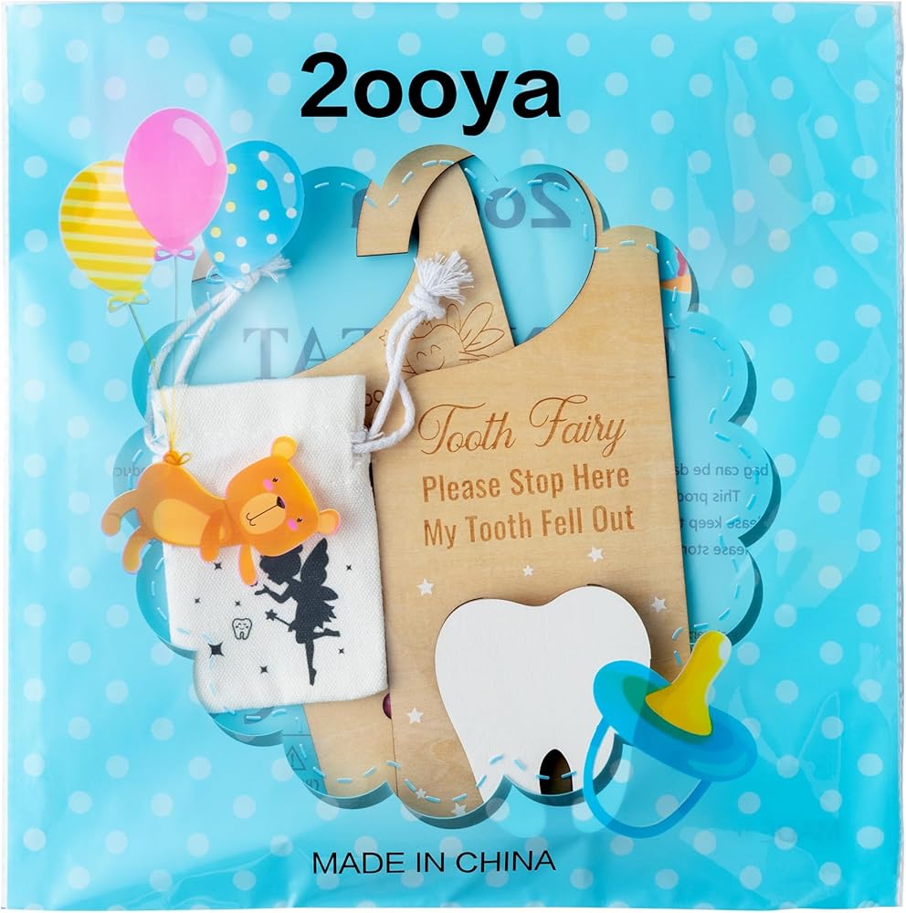 2ooya 2 قطعة خشبية الأسنان الجنية الباب شماعات مجموعة الأسنان البيضاء الجنية المال حامل مع حقيبة الأسنان لطيف الأسنان الجنية باب خشبي شنقا علامة مع الأسنان الجنية الحقيبة حقيبة التقاط مربع هدية للأطفال الأسنان المفقودة