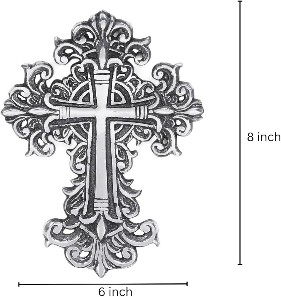 FINEST QUALITY : This wall cross size Length - 8 inch Width - 6 inch is made of fine quality metal material, The antique finish makes it an elegant cross decoration for the wall, those who own it love it.