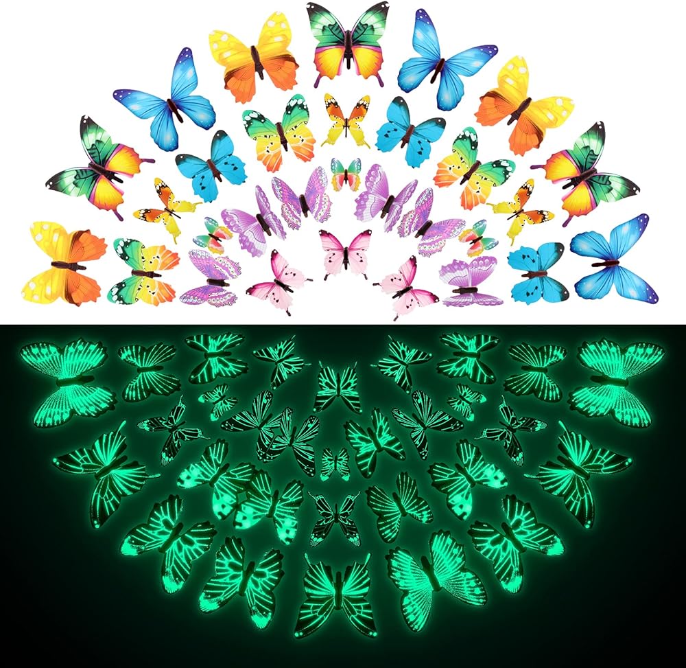 محتويات العبوة: سوف تحصل على 96 قطعة من ملصقات الفراشة المضيئة بأنماط وألوان مختلفة وأنماط مختلفة وألوان مختلفة وكمية كافية مفتوحة لك