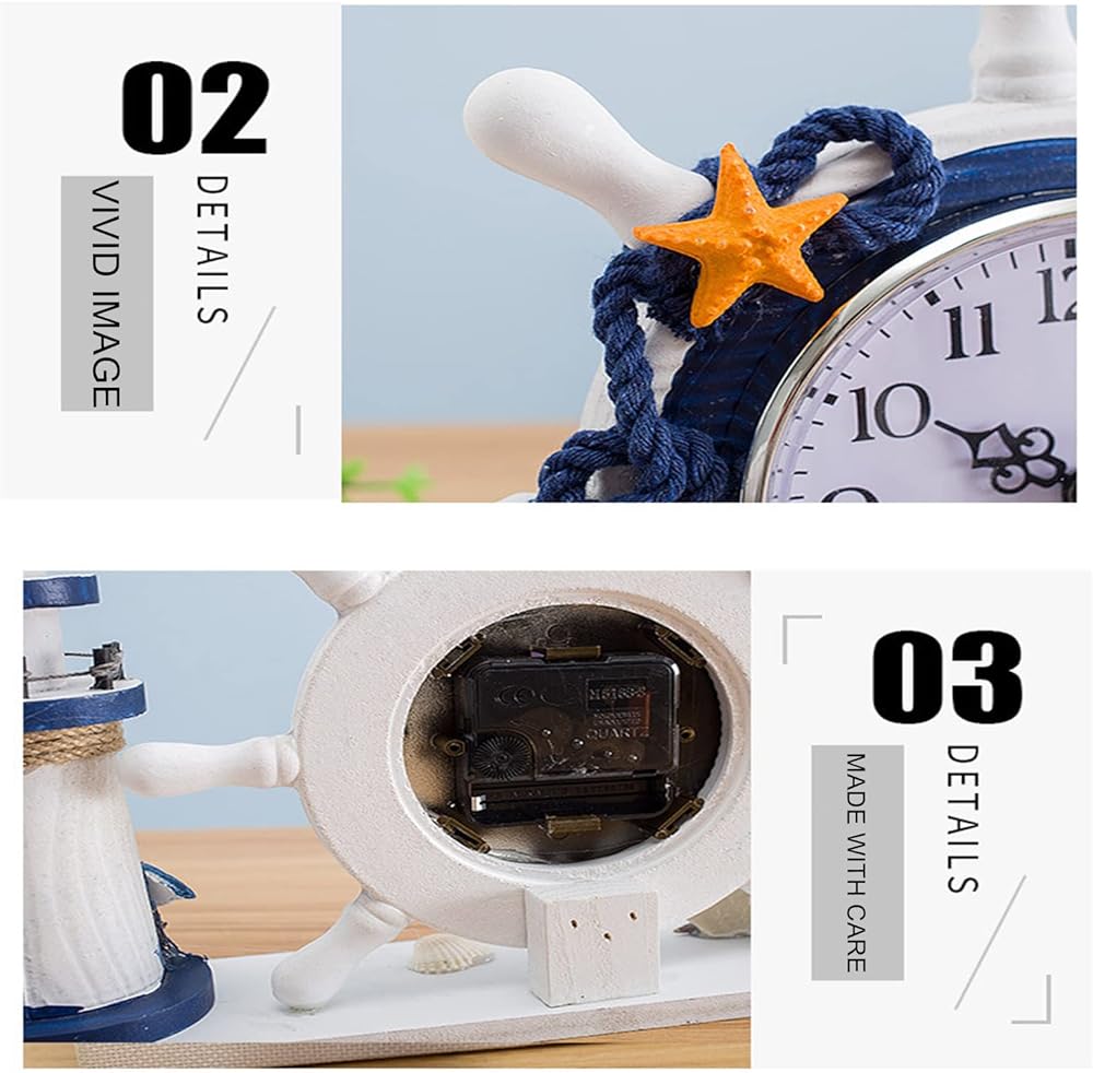 HIGH-QUALITY MATERIALS: The nautical clock is made of a high-quality wooden frame with exquisite hand painting. The dial is made of plastic that is waterproof, wear-resistant, and has long-lasting use. The distinctive design of the Mediterranean style.