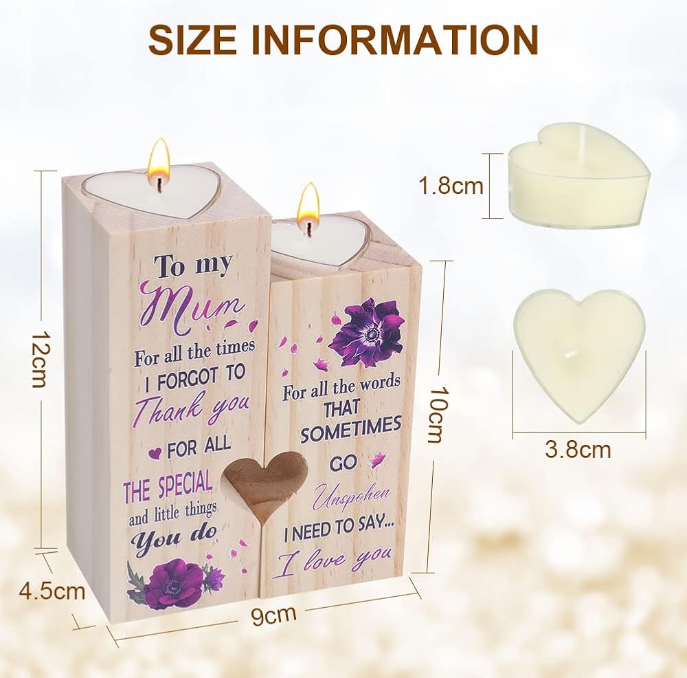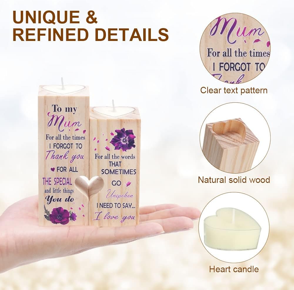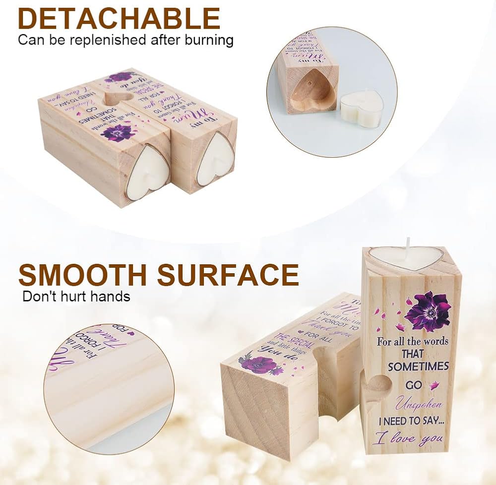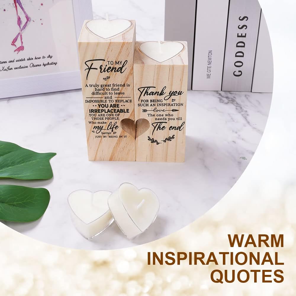 🎁【Double Sided Copywriting】 There are different text designs on both sides of the candle holder. These exquisite wood images and text can help you express your love better. This is the perfect choice for best friend gifts, bestie gifts, gifts for sisters and other female friends.