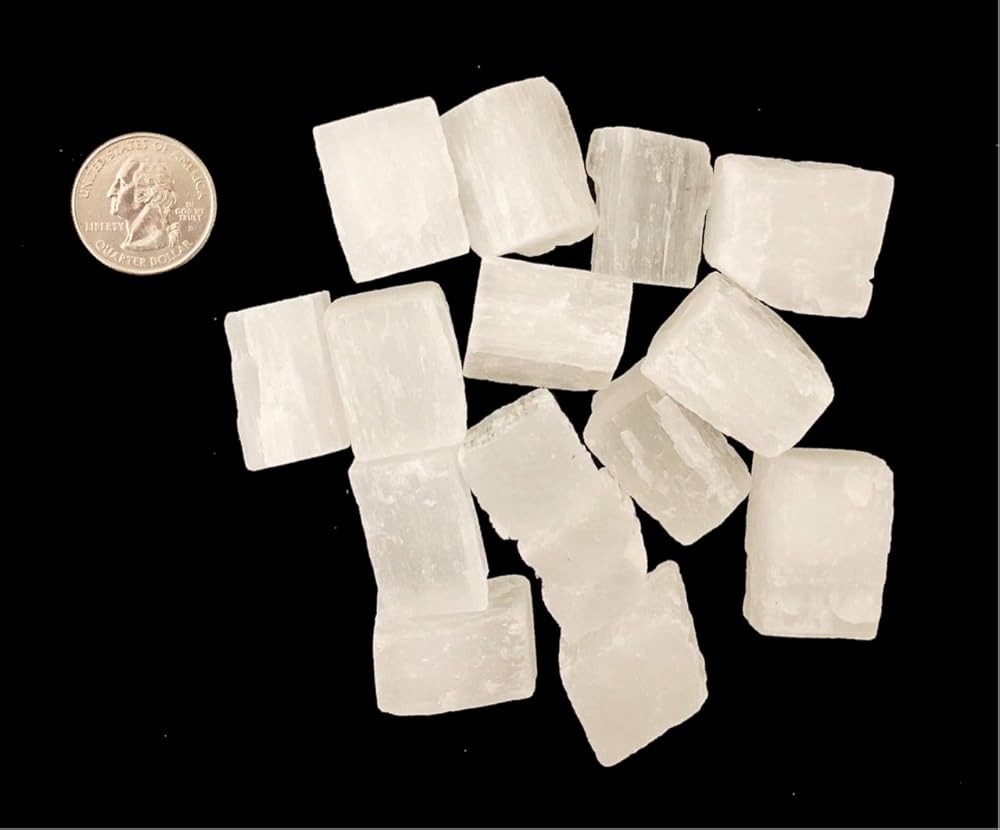 (1) 1/2 باوند من مكعبات السيلينيت الخشنة / قطع. كل نصف باوند يتضمن بطاقة معلومات سيلينيت. تحتوي كل مجموعة على ما يقرب من 12-20 قطعة. نظرًا لأن هذا معدن طبيعي مقطوع يدويًا، فإن كل قطعة ستكون مختلفة قليلاً في الشكل والحجم واللون عن الصورة المخزنة.