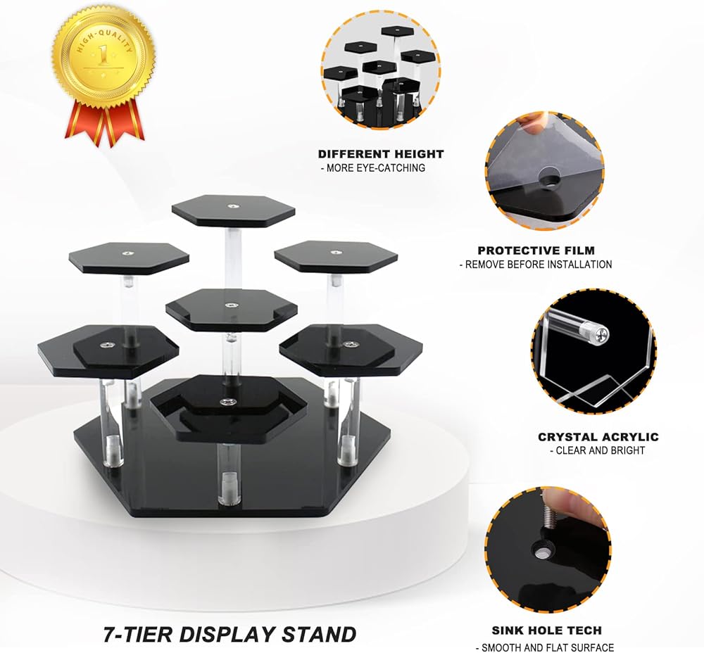 [تصميم ذكي]: يستخدم الرافع الأكريليك تقنية فتحة الغطس، والتي توفر سطحًا أملسًا ومسطحًا لعرض فانكو، والكب كيك، والعطور، والمقتنيات، والمجوهرات ومنتجات التجميل، وأكثر متانة واستقرارًا؛ الاستاند الأكريليك مكون من 7 أرفف بإرتفاعات مختلفة. يتيح التصميم متعدد المستويات عرض المنتجات بشكل شامل، مما يجعل المجموعات أكثر جاذبية.