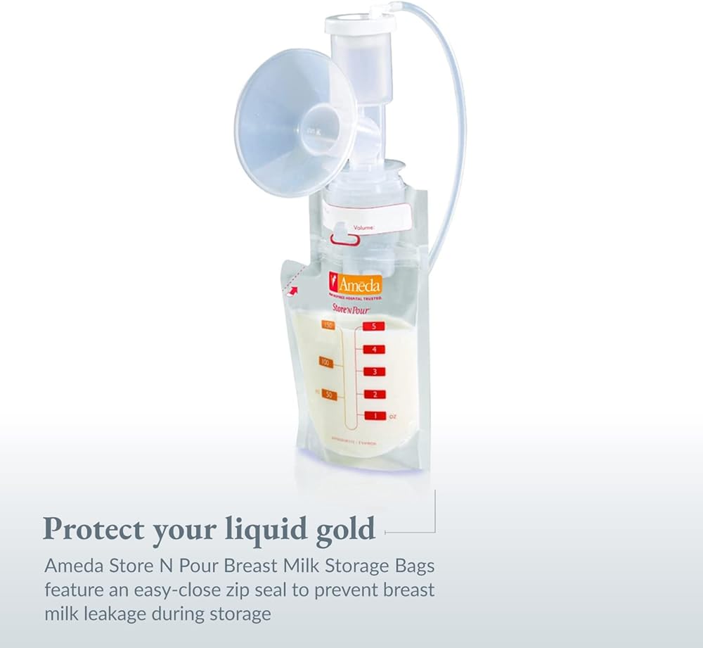 احمي الذهب السائل: تتميز أكياس تخزين حليب الأم اميدا Store N Pour بسحّاب سهل الإغلاق لمنع تسرب حليب الأم أثناء التخزين بالإضافة إلى فوهة فريدة من نوعها للتمزيق والصب للمساعدة في منع الانسكابات أثناء نقل الحليب من كيس إلى زجاجة.