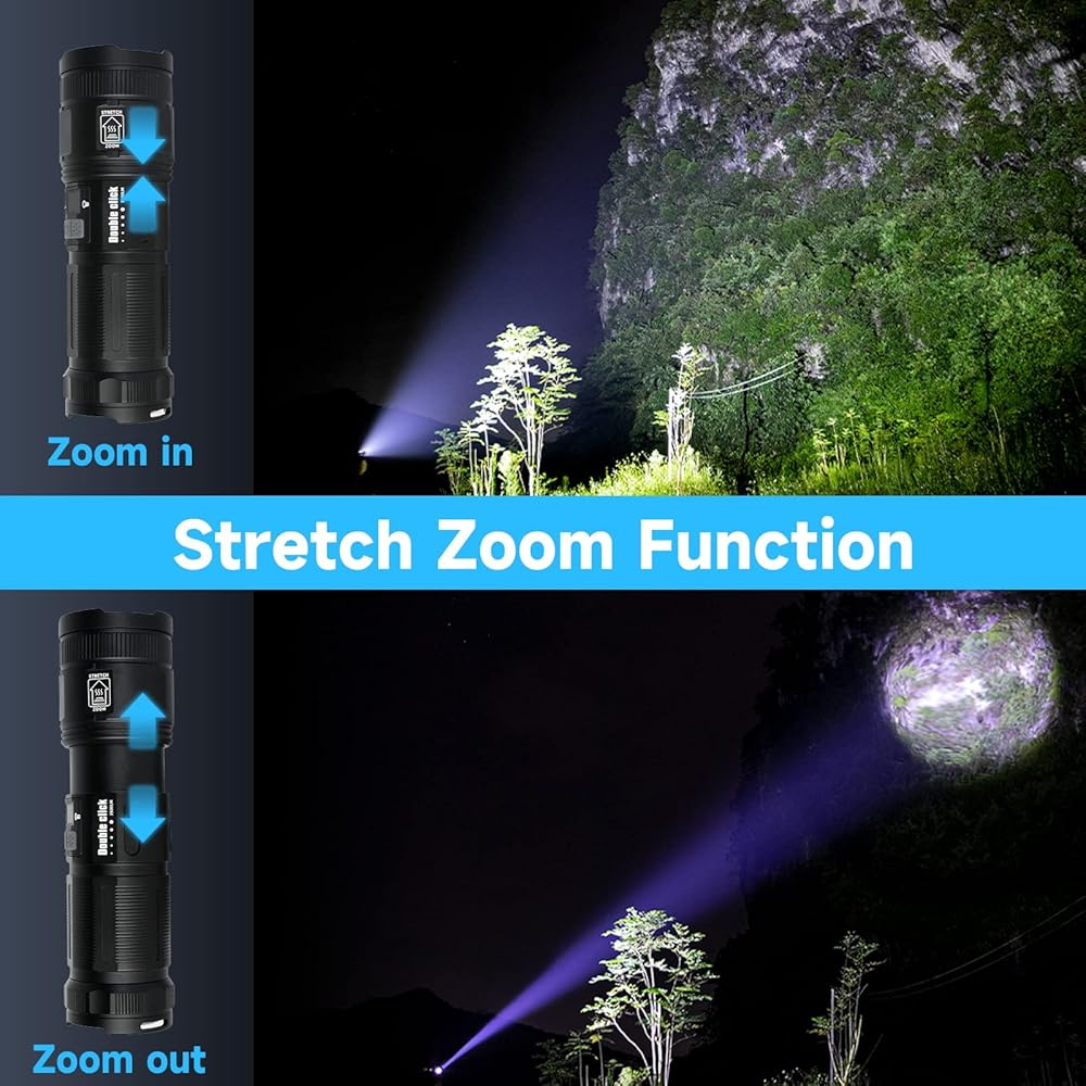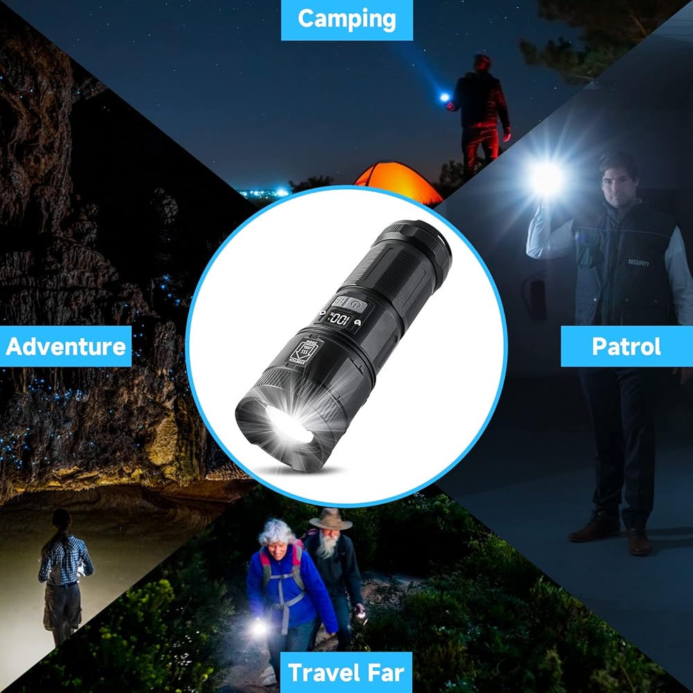• 【وقت استخدام مطور وباور بانك وشاشة رقمية】تم تحديث المصباح اليدوي القابل لإعادة الشحن حديثًا لتقليل وقت الشحن وإطالة عمر الخدمة، ويمكن استخدامه بشكل مستمر لمدة 12 ساعة. تتيح لك الشاشة الرقمية الفريدة لنسبة البطارية أيضًا عدم القلق بشأن البطارية المتبقية. كما أن البطارية المدمجة ذات السعة الكبيرة والشحن السريع الذكي بمنفذ USB تجعل الشحن أسرع، ويمكنك استخدامها كباور بانك لشحن هاتفك في حالات الطوارئ.
