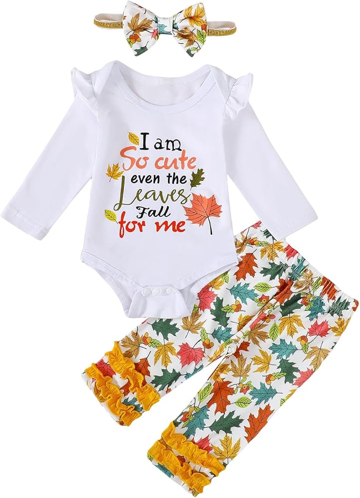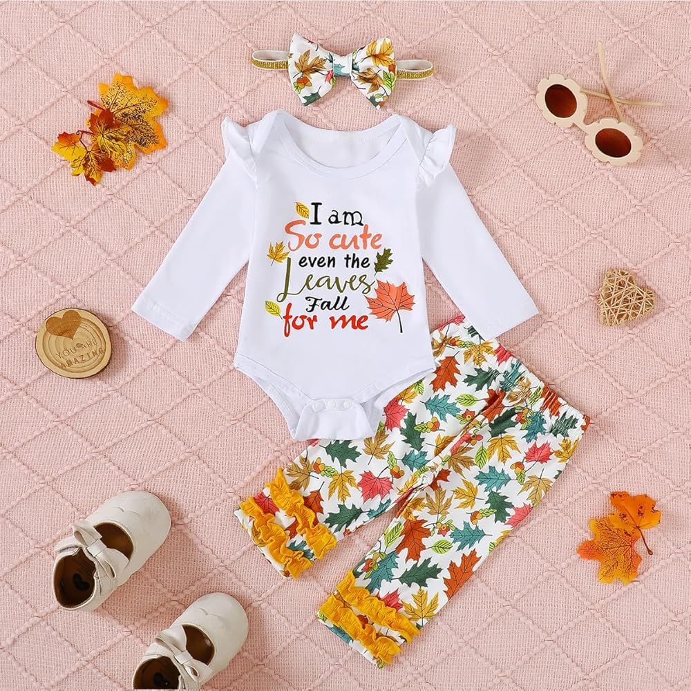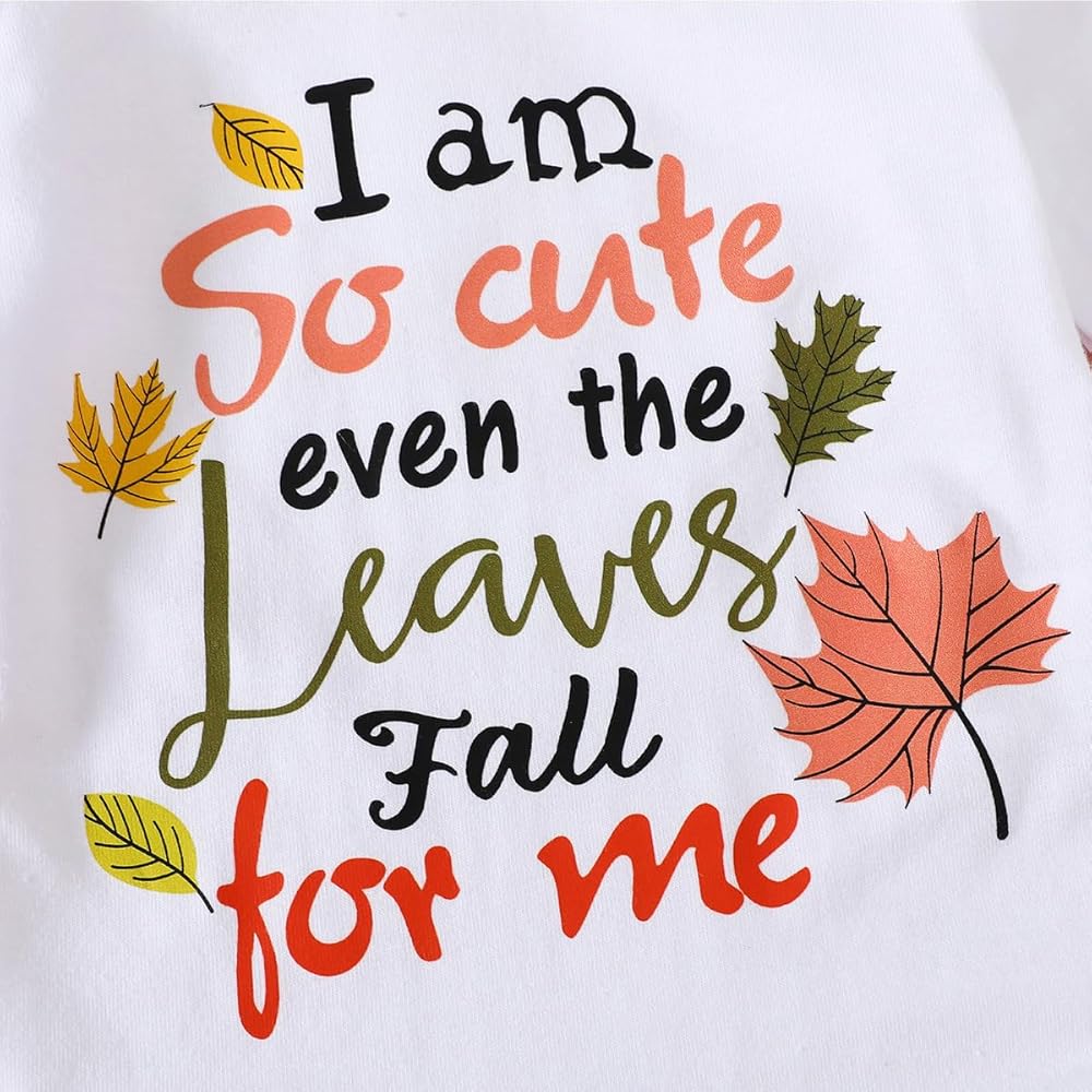 أنا لطيف جدًا حتى الأوراق تتساقط بالنسبة لي، بدلة مطبوعة، زخرفة أوراق القيقب، ملابس خريفية للفتيات الصغيرات، ملابس خريفية ساحرة للغاية.