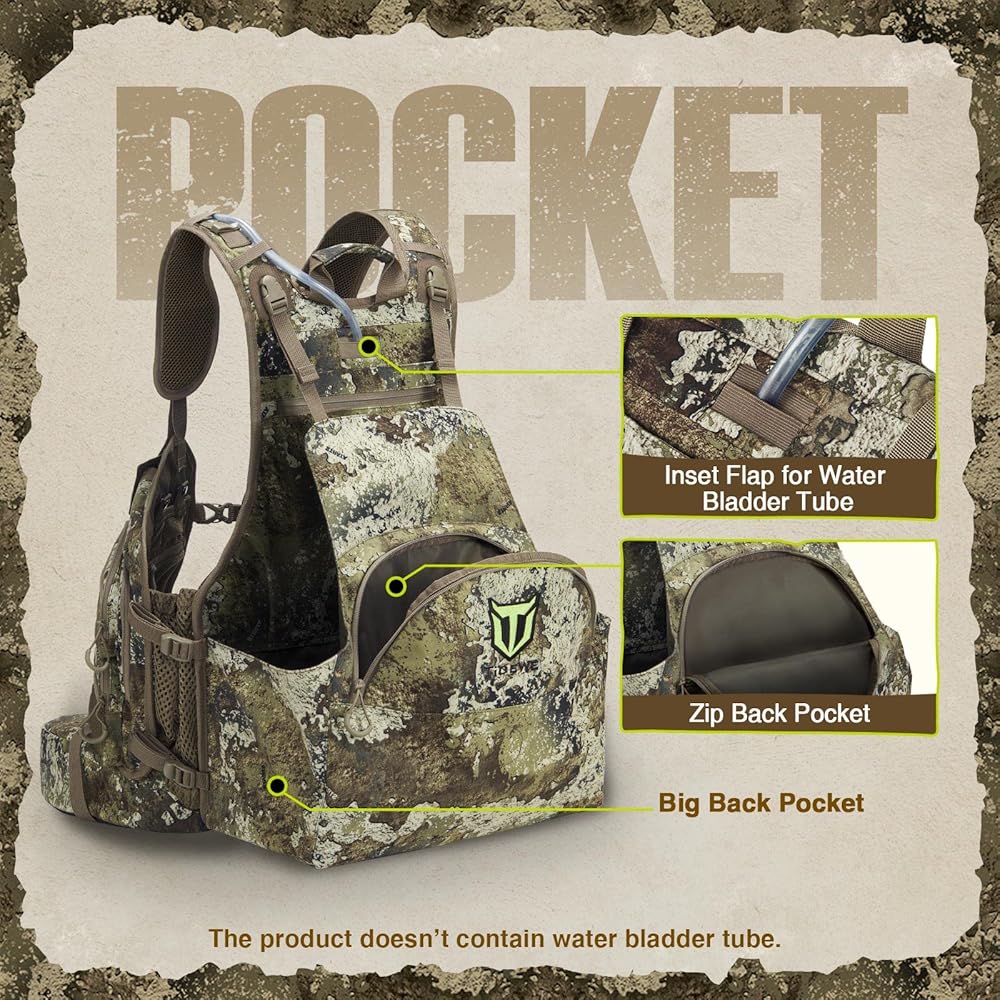 【User-Friendly】TIDEWE is committed to your ultimate hunting experience by offering this unique and customized design. The TIDEWE turkey vest features the popular Truetimber HTC Green pattern to help you perfectly integrate into the surrounding environment. This turkey vest is compatible with 2-liter hydration systems, keeping you hydrated while hunting. The unique non-slip clip on shoulder straps prevent your shotgun strap from slipping off.