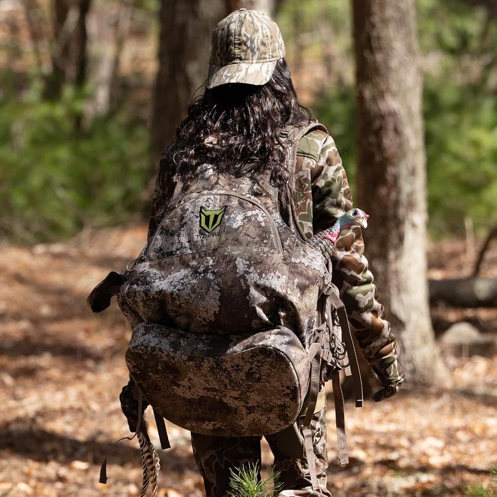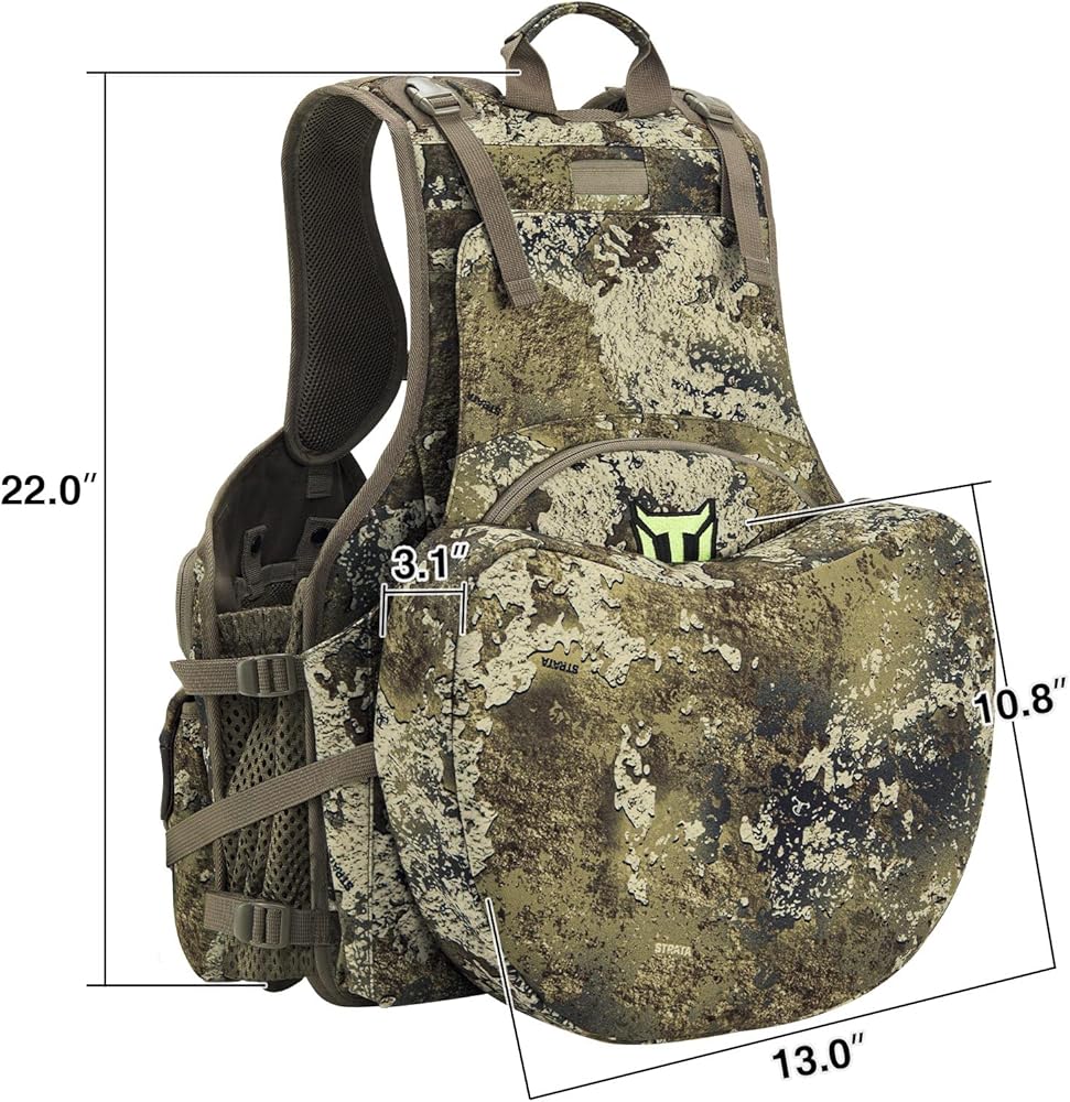 【Large Capacity & Multi Pockets】The TIDEWE turkey vest is designed with 2 large pouches on the back, and a variety of different accessory pockets. It enables you to organize your hunting apparel, calls, water bottles, rangefinder and other hunting gear. TIDEWE's turkey vest will help you carry everything you need to get your next Trophy Tom, and keep you comfortable while doing it!