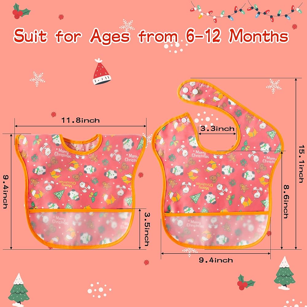 • Great Christmas gift: Our Christmas waterproof baby bibs are designed with classic Christmas colors and elements, perfect for baby to wear at Christmas. Our bibs will help keep your child from food-soiled clothes and never-ending laundry. Its colors and Christmas patterns look very appealing and are ideal for Christmas gifts for babies, as well as a great photo prop.
