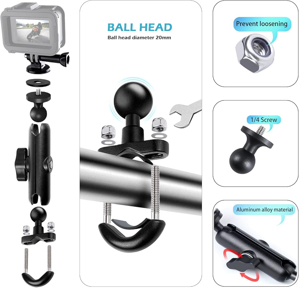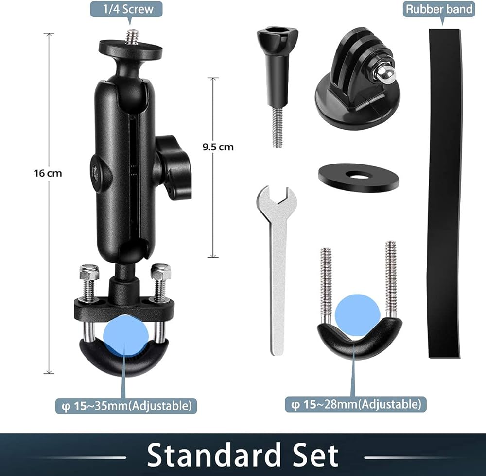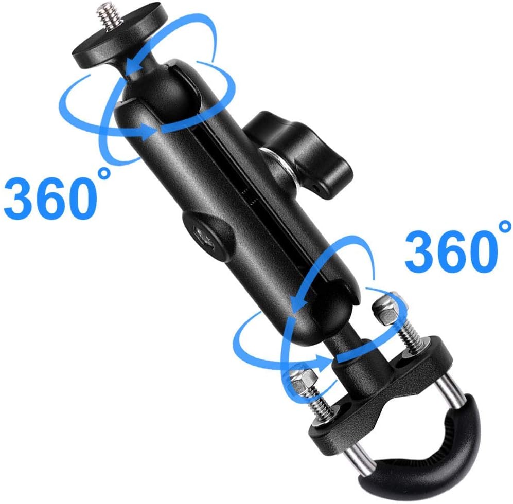 Multi-Function 360 ° Motorcycle Handlebar Bracket for GoPro Hero 4 5 6 7 8 Black/YI Action Cameraand Other Action Camera.with 1/4 Screw Double Ball Head Metal clamp arm for Motorcycles/Bicycles etc.