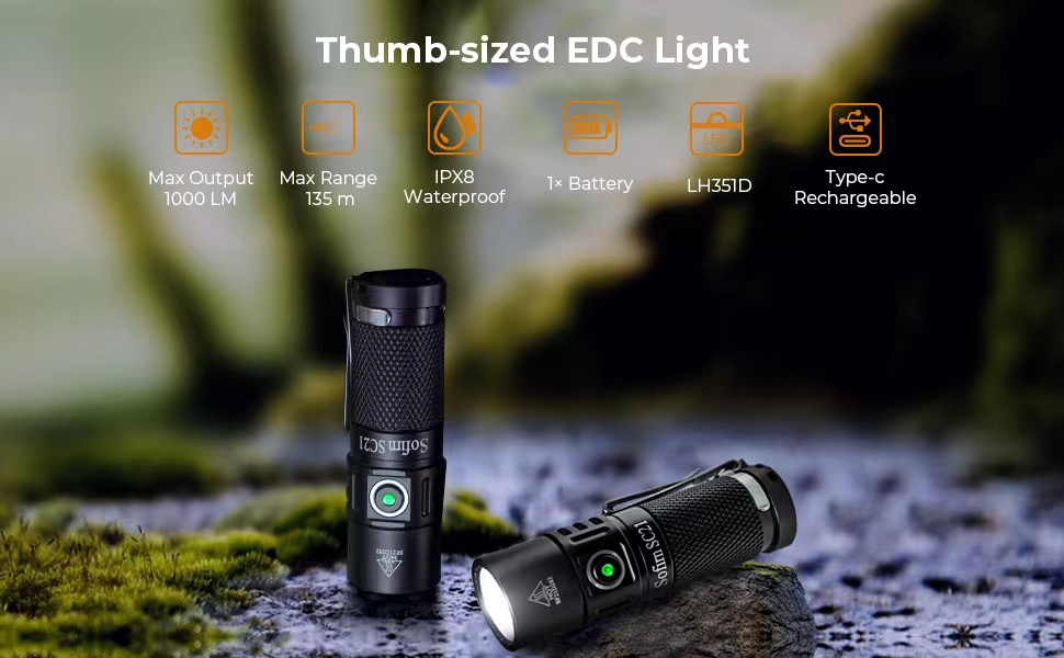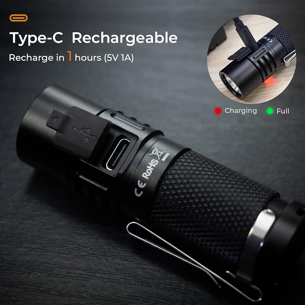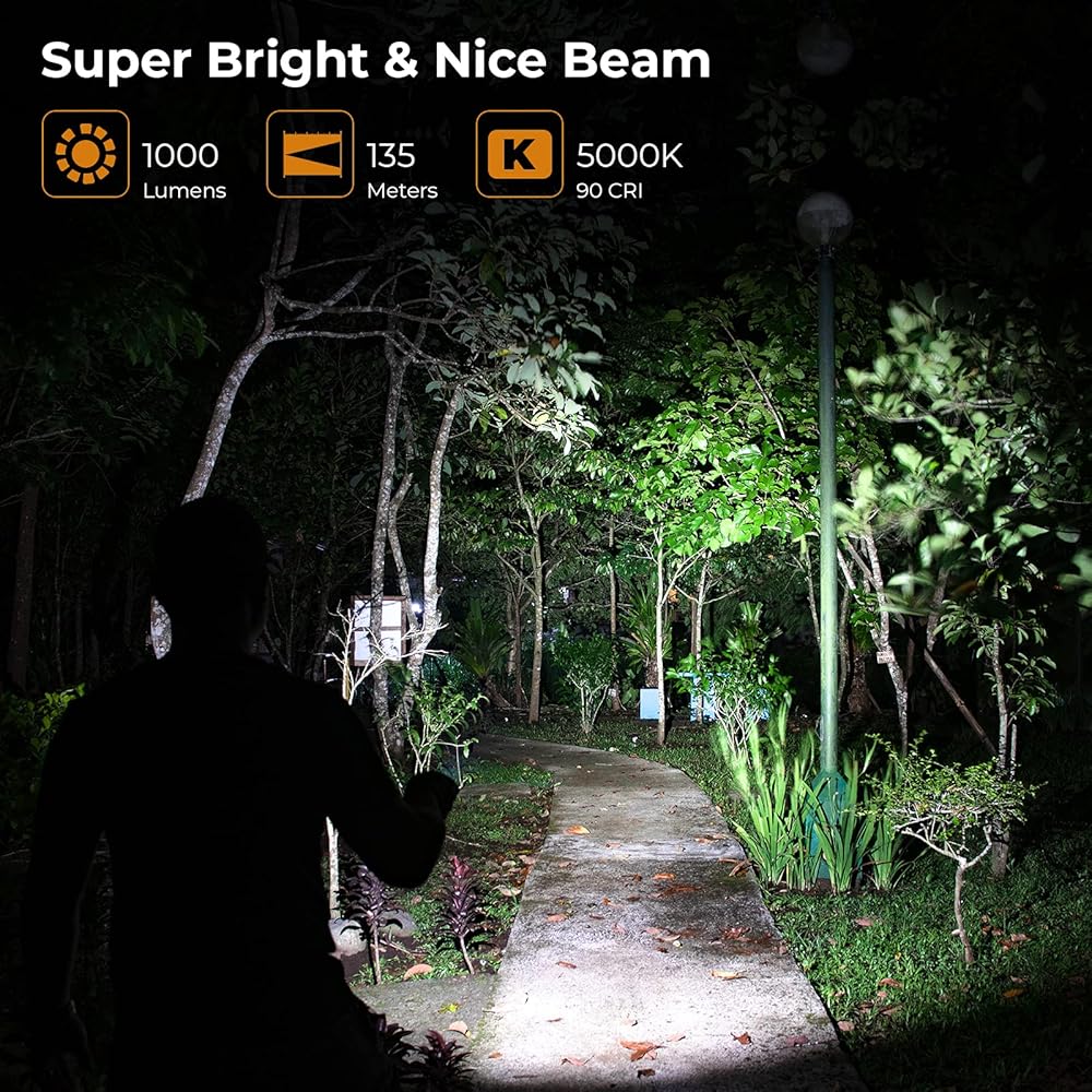 صغير وقوي: صغير مثل إصبع الإبهام، يعطي المصباح الصغير 1000 لومن بحد أقصى، ويضيء مساحة كبيرة مثل ملعب كرة القدم، ويصل الشعاع إلى 135 مترًا كحد أقصى. يمكنك ربطها بحلقة مفاتيحك، واستخدامها كأداة EDC لتمشية الكلاب والركض وما إلى ذلك.