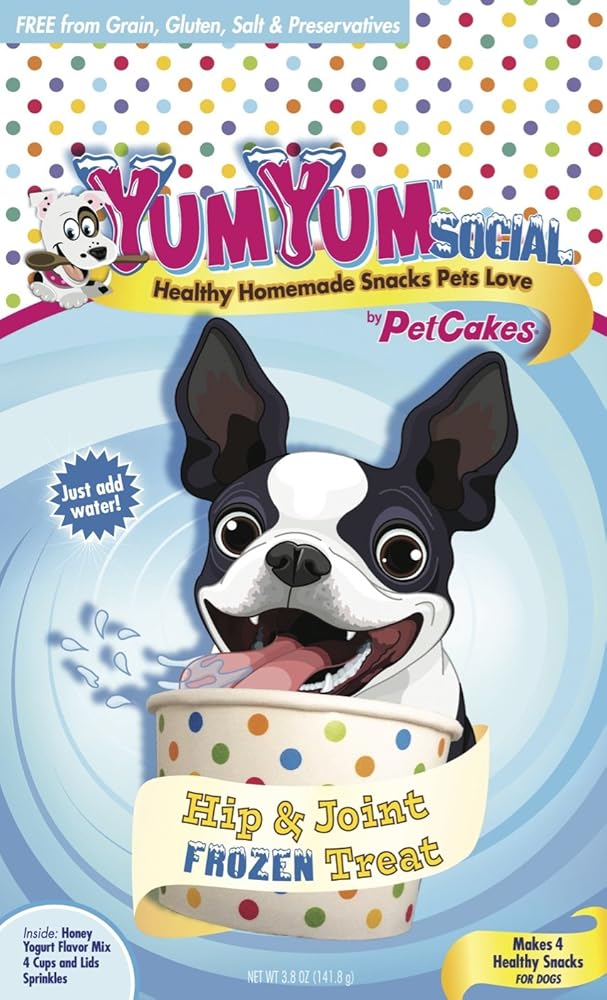 YumYum Social is the only DIY healthy homemade ice cream with collagen for hip and joint support. Each kit comes with a packet of dry mix with sprinkles and 4 cups. Just ADD Water, freeze and serve! Fun for dog parties (serves 4).