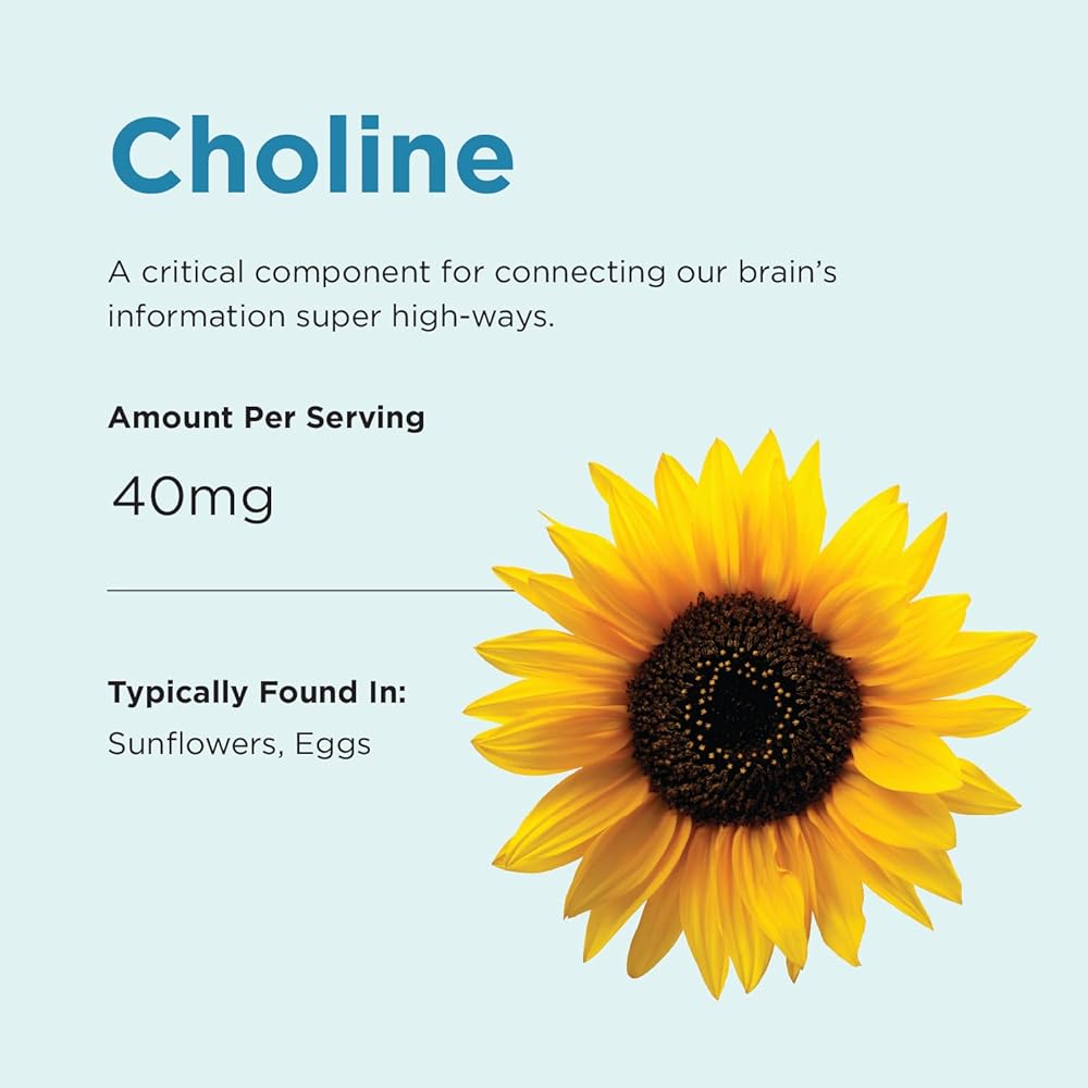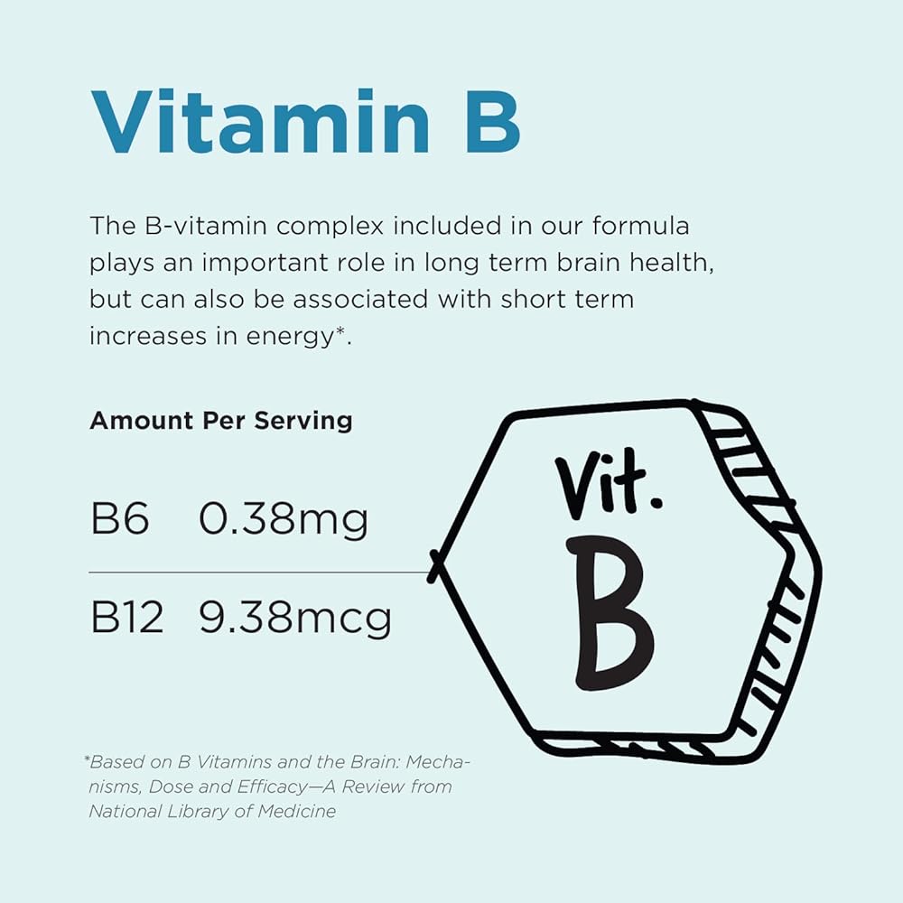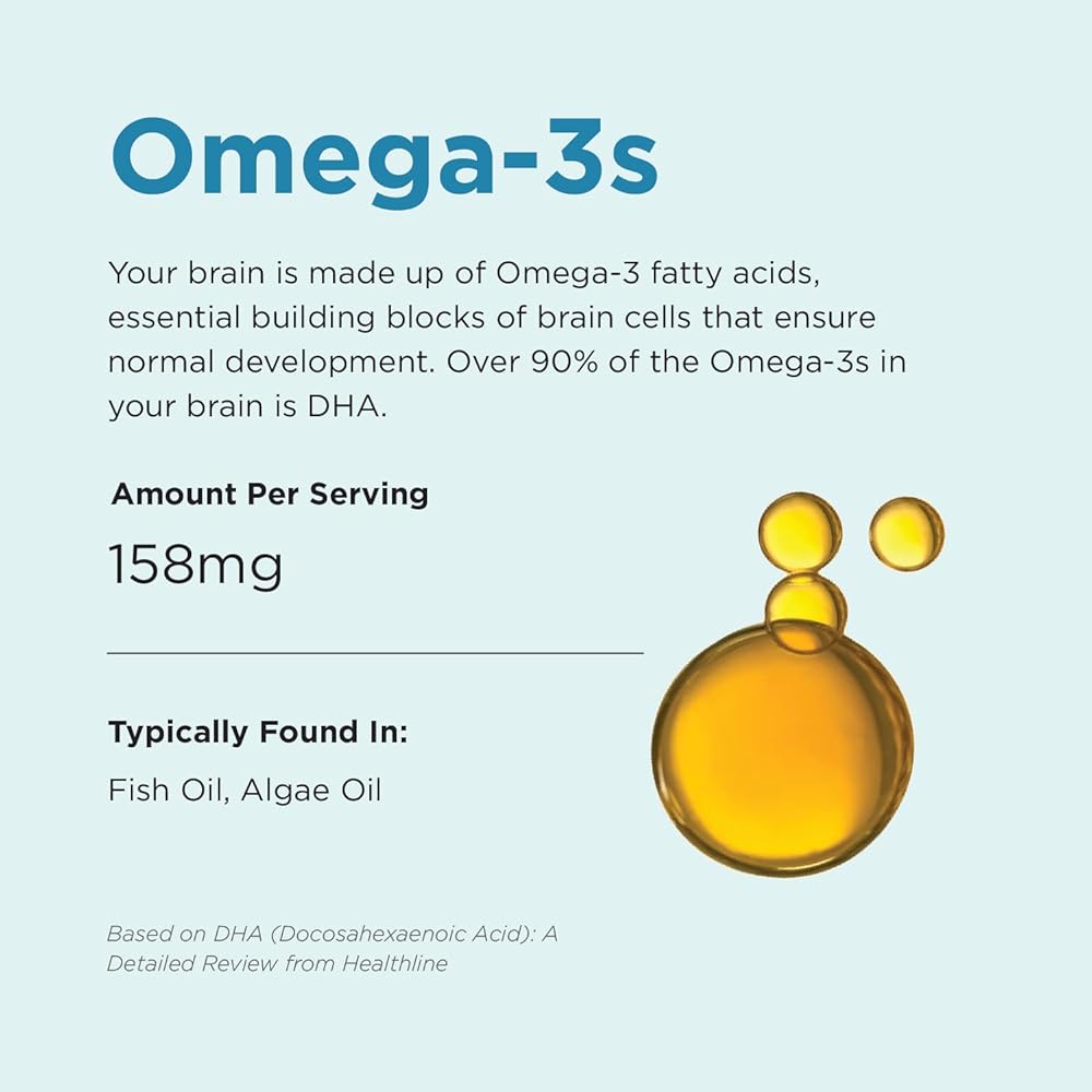 • يحتوي على ستة مغذيات مهمة لصحة الدماغ: الفيتامين الوحيد لصحة الدماغ الذي يجمع بين 6 عناصر غذائية مهمة وهي أوميغا 3 (DHA وEPA)، والكولين، واللوتين، وB6 وB12 لدعم المزاج والتركيز والذاكرة.