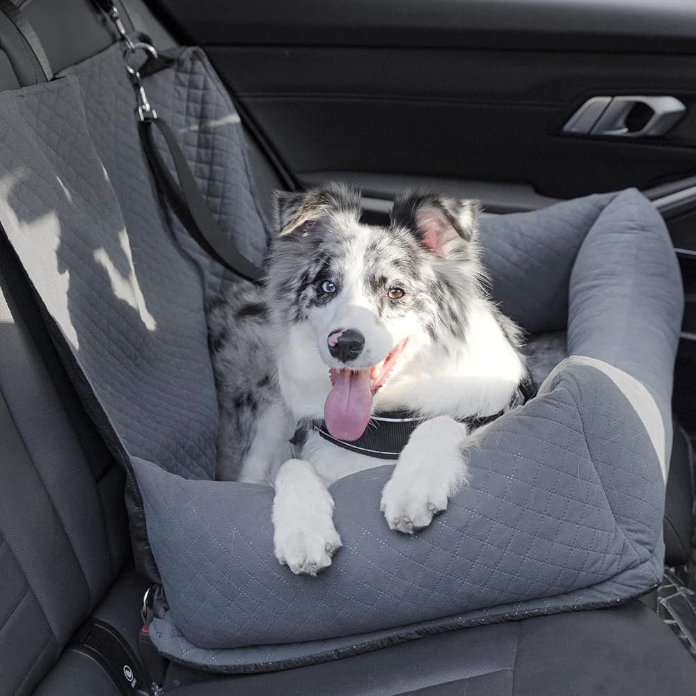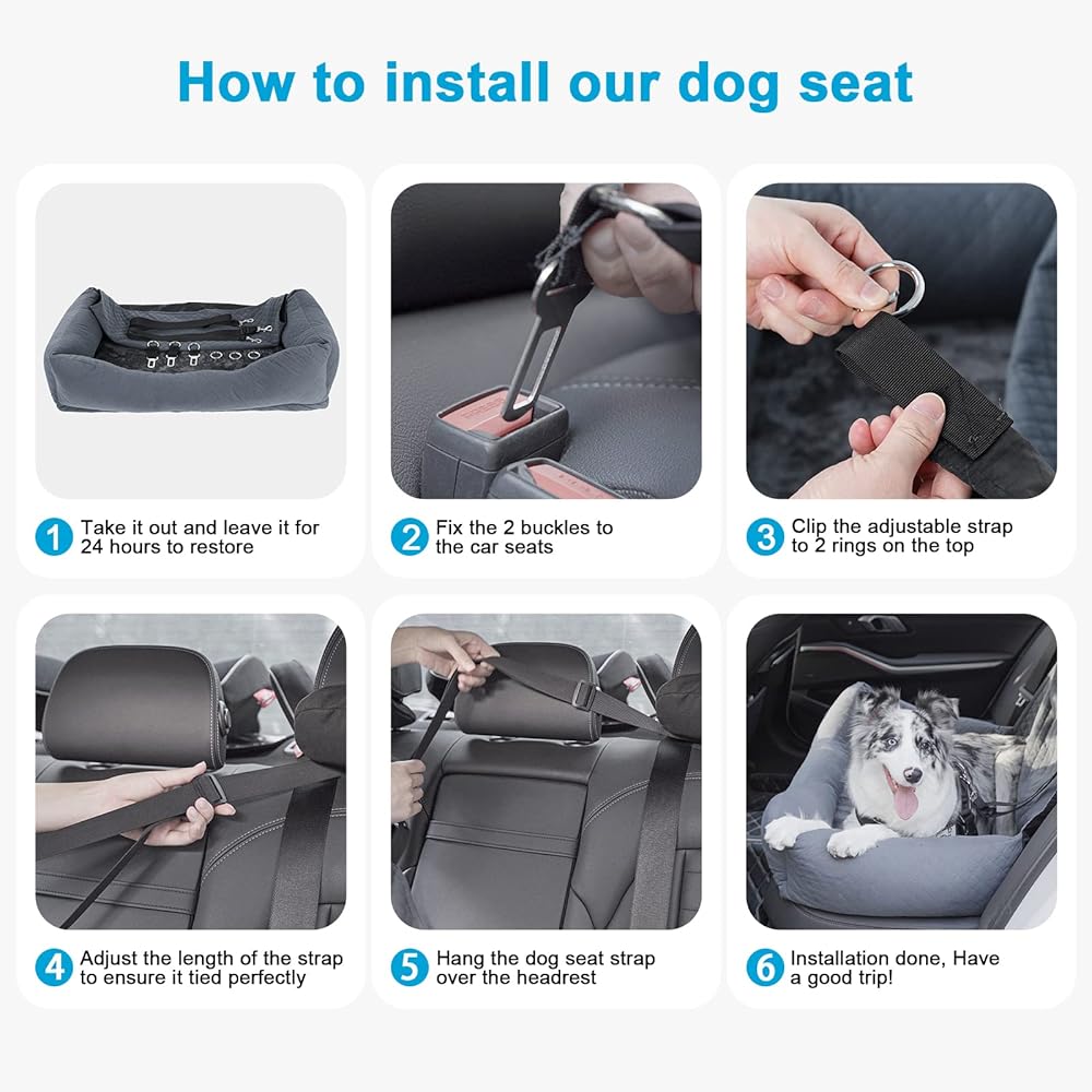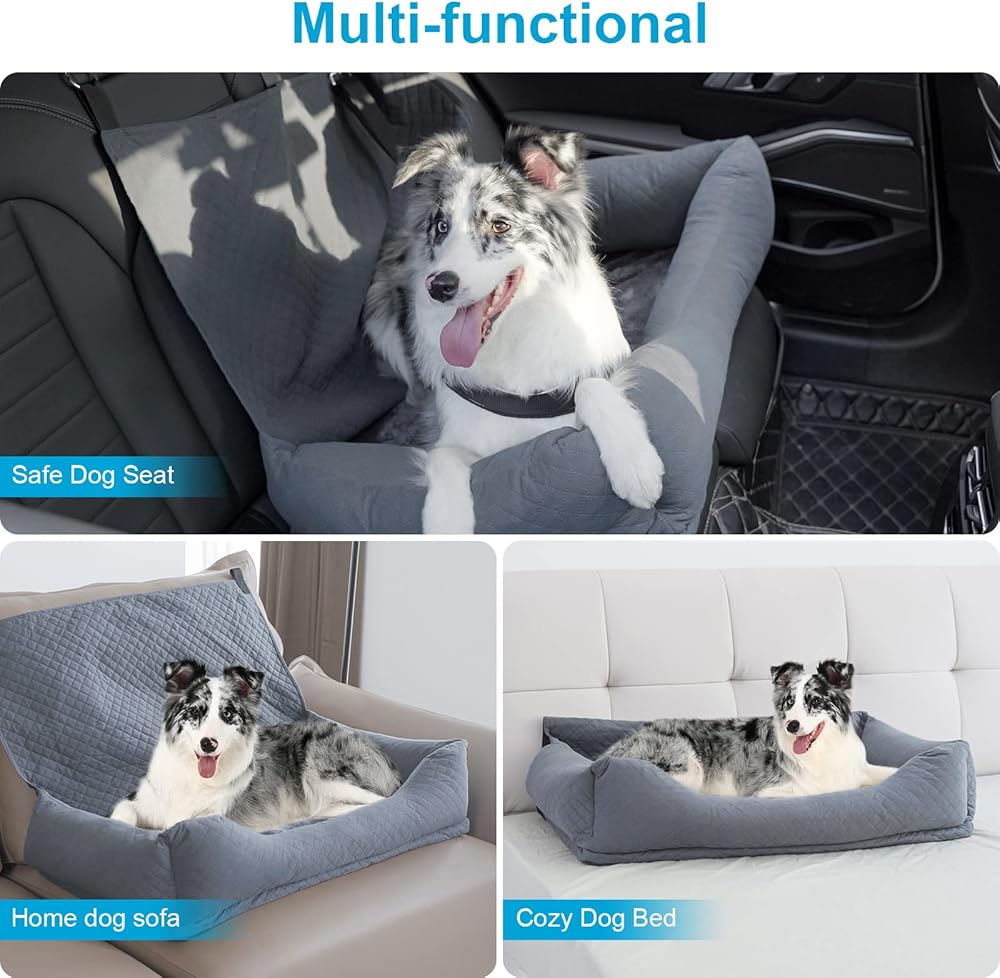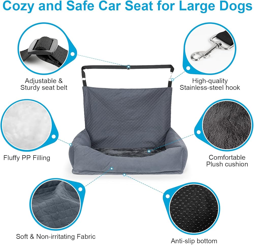 🗺️Safe & Distraction-Free Travel: With safety being our top priority, the dog car seat for large dogs provides a safe and distraction-free travel experience for you and your furry friend. The sturdy dog tethers and non-slip bottom ensure the dog car seat and your pet stay secure and stable during your journey and prevent any unwanted distractions while driving, keeping your journey always safe.